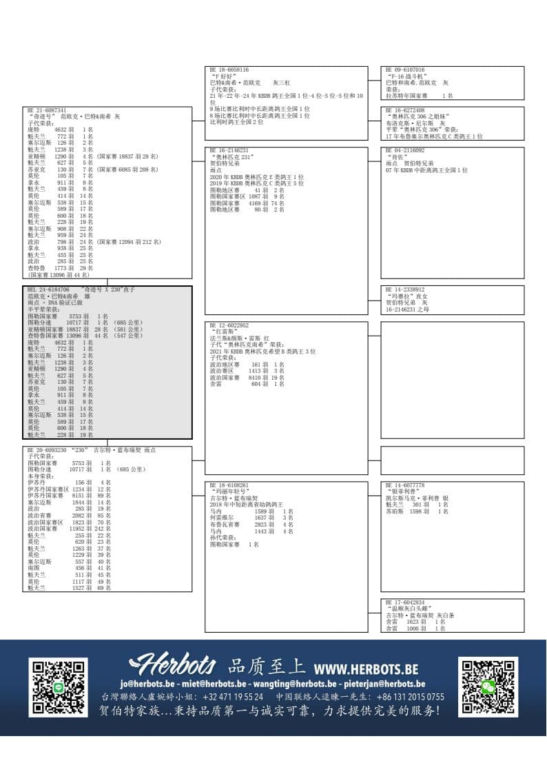 子代荣获: 21 – 24年KBDB鸽王全国1位, 4位, 5位, 5位和10位 -