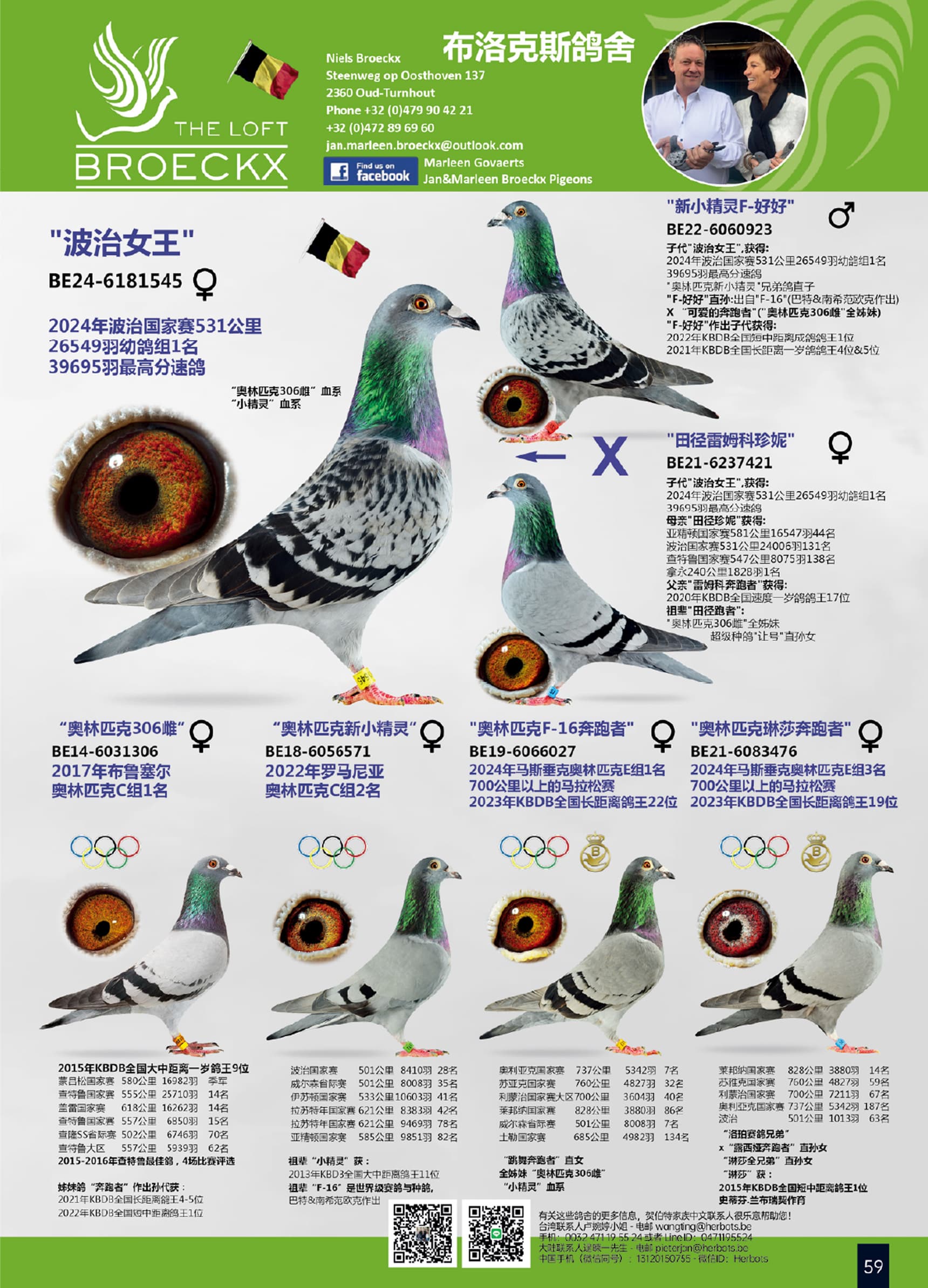 大无畏赛将” (著名奥林匹克鸽王“奥林匹克306”之全兄弟)  x “基础配对直女”作出