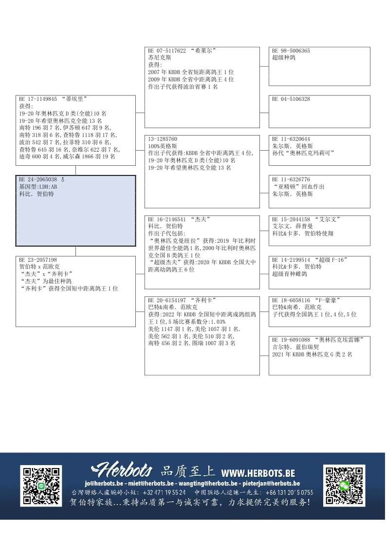 半姊妹 “BE 22-2124009” 杰夫鸽王获得: