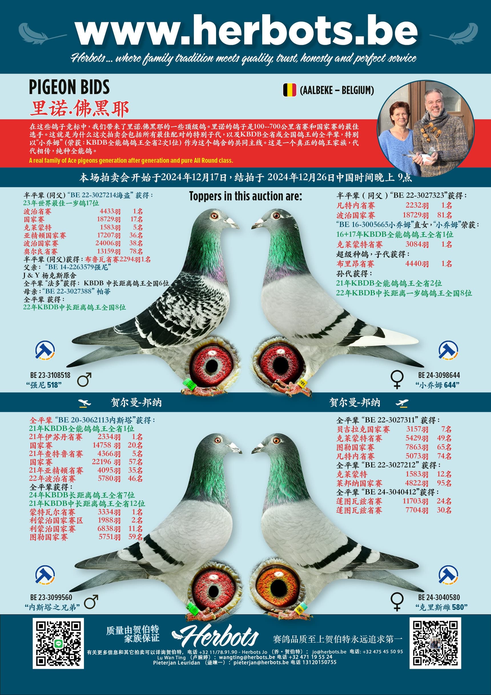 在这些鸽子竞标中,我们带来了里诺.佛黑耶的一些顶级鸽。里诺的鸽子是100--700公里省赛和国家赛的最佳选手。