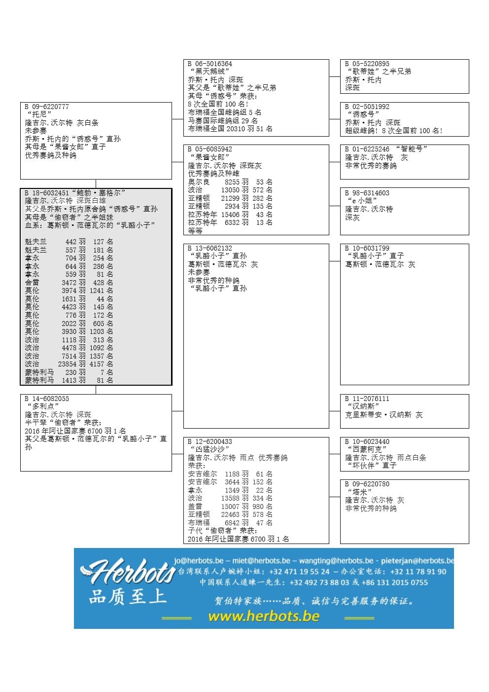 “黑天鹅绒” (托内原舍 – 其父是“歌蒂娃”之半兄弟 - “诱惑号”直子, “诱惑号”荣获8次全国前100名) x 顶级雌鸽“果酱女郎”作出