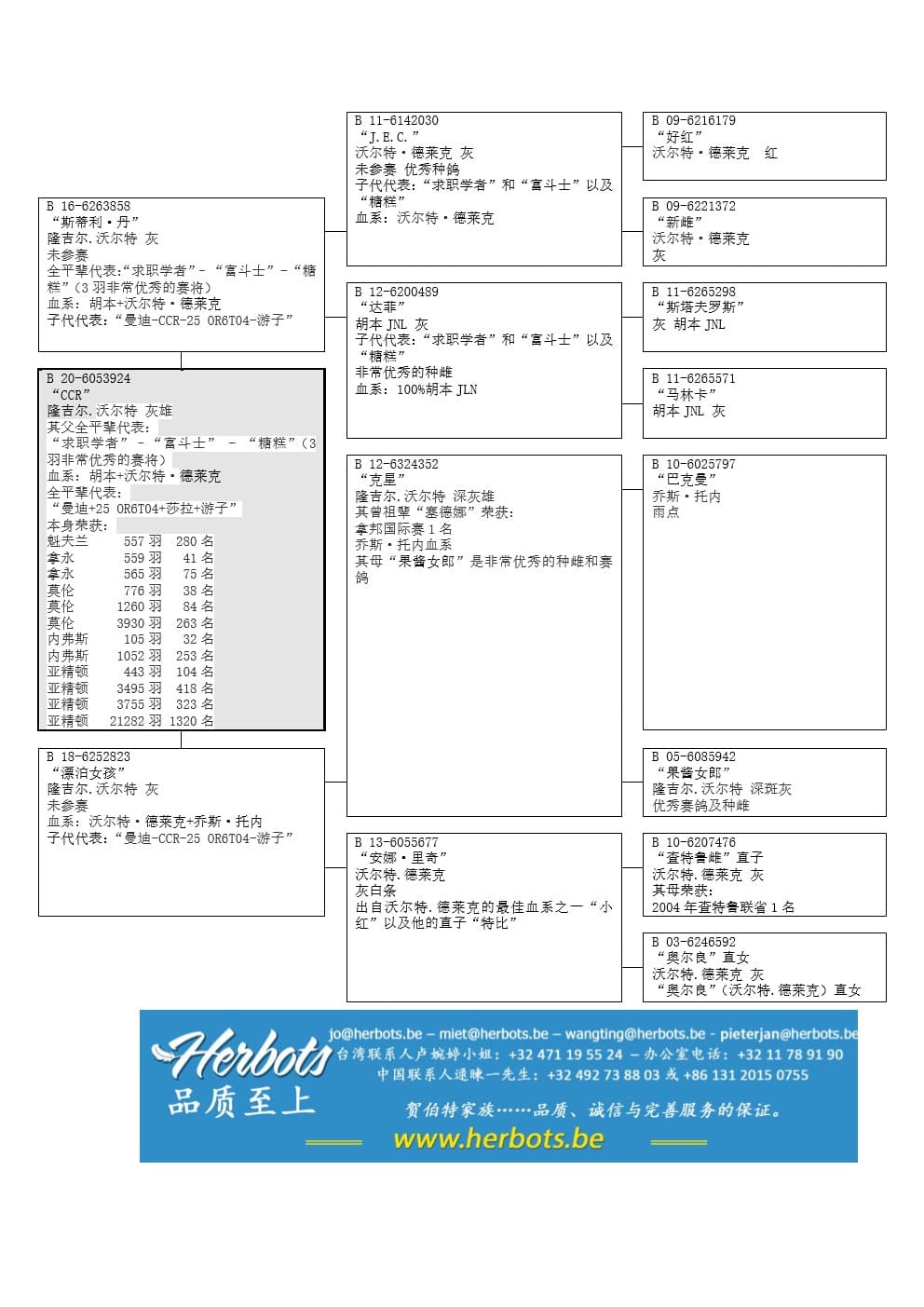 “克星” (顶级雌鸽“果酱女郎”直子) x “安娜·里奇” (沃尔特·德莱克原舍 – 查特鲁联省1名直孙女)直女