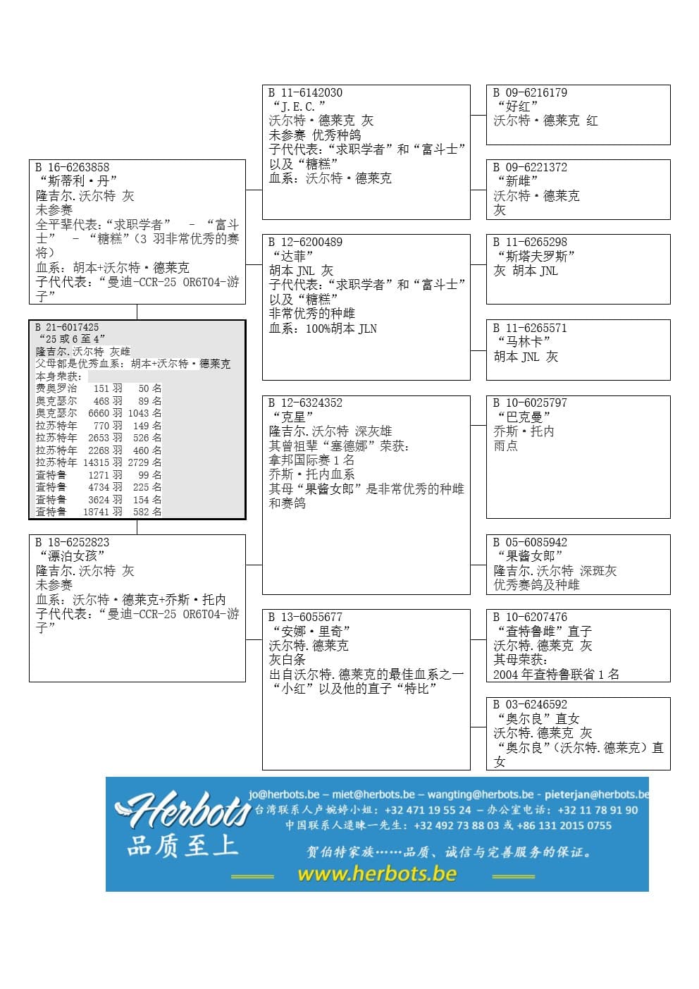 “克星” (顶级雌鸽“果酱女郎”直子) x “安娜·里奇” (沃尔特·德莱克原舍 – 查特鲁联省1名直孙女)直女