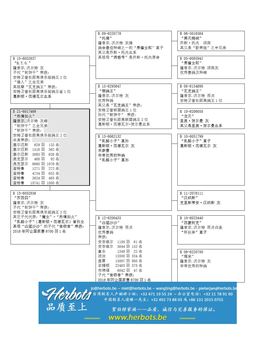 “猎人”之全兄弟. 其祖辈“瓦克鸽王”荣获安特卫普长距离俱乐部鸽王省1位