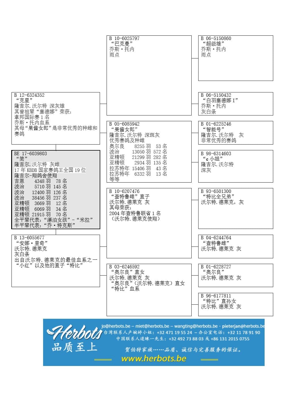 “巴克曼” (100% 托内 – 拿邦国际赛1名的“塞德娜”直孙) x 顶级雌鸽“果酱女郎”(拉苏特年国家赛 15,406羽43名)作出