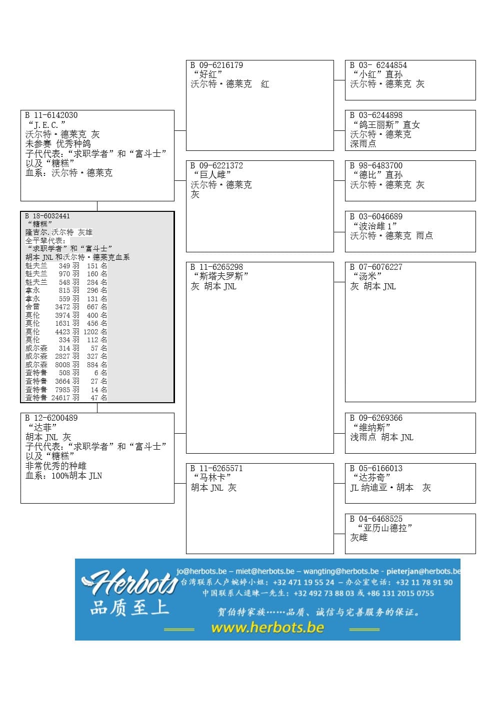 荣获4 次1名– 布瑞福国家赛 5,952羽43名 – 拉苏特年国家赛 6,205羽67名 ;是“伎俩” (21年4场国家赛鸽王排名全国23位)之父