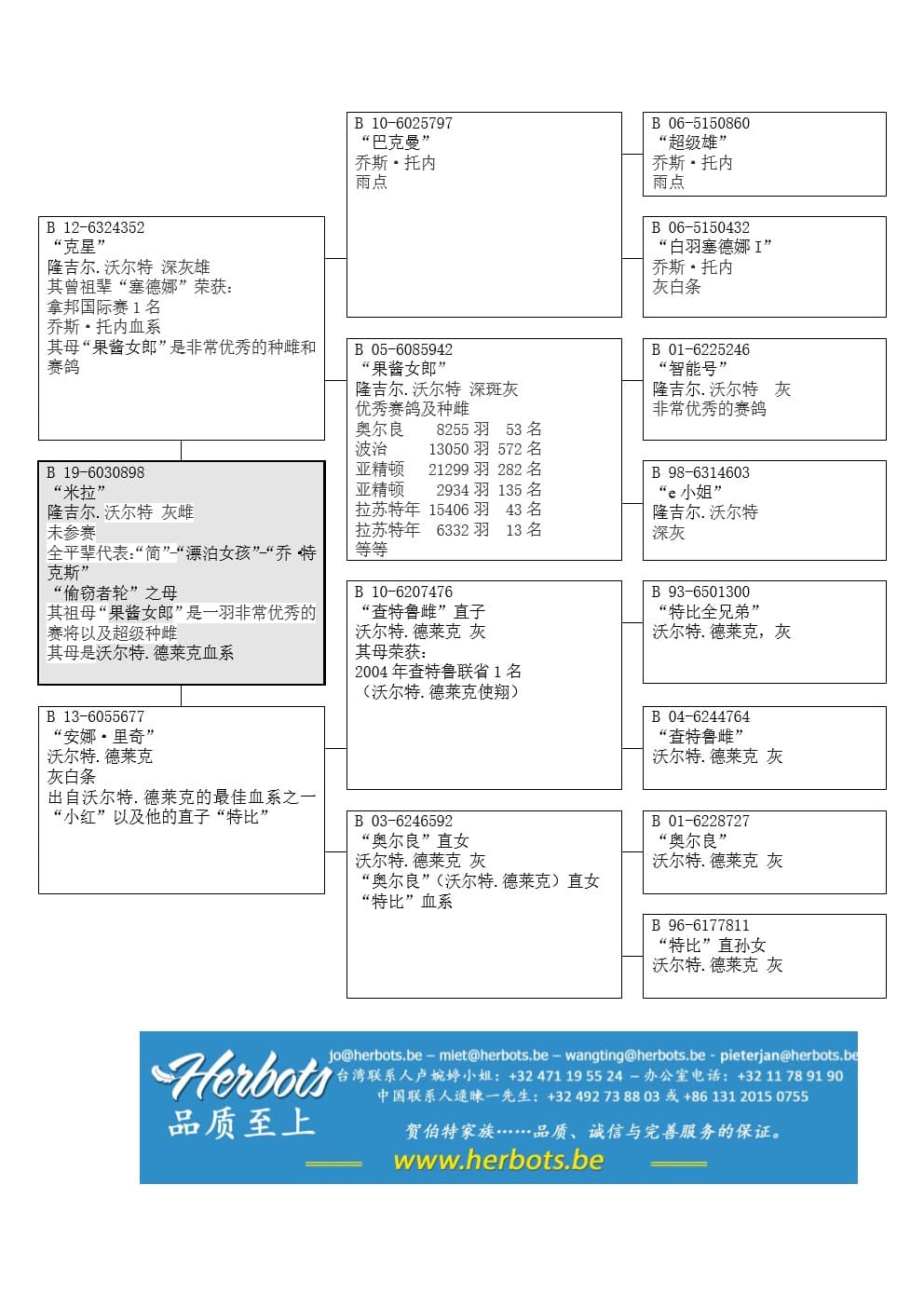 “巴克曼” (100% 托内 – 拿邦国际赛1名的“塞德娜”直孙) x 顶级雌鸽“果酱女郎”(拉苏特年国家赛 15,406羽43名)作出