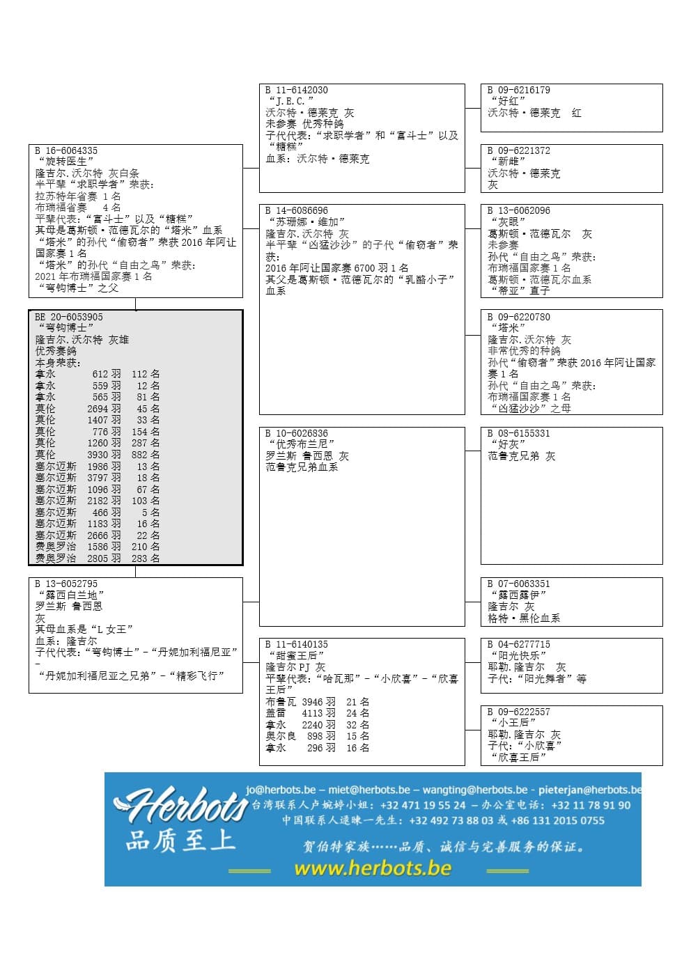 “优秀布兰尼” (鸽系: 范鲁克 x隆吉尔.耶勒) x “甜蜜王后” (荣获: 布鲁瓦 3,946羽21名 – 盖雷 4,113羽24名 – 拿永 2,240羽32名 – 奥尔良 898羽15名 – 拿永 296羽16名 - 隆吉尔.耶勒原舍 - 平辈代表:“哈瓦那”, “小欣喜”, “欣喜王后”) 作出