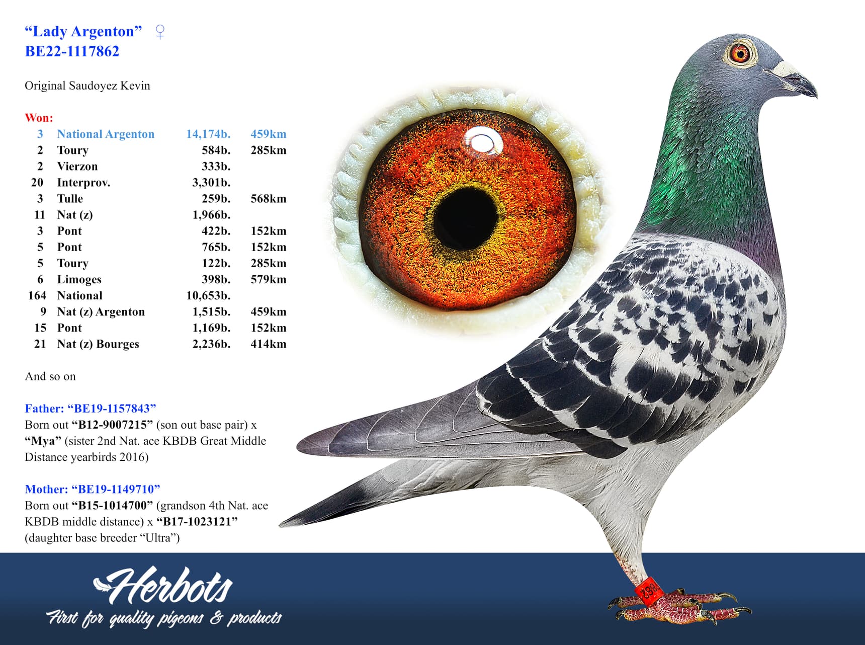 B15-1014700” (KBDB中距离鸽王全国4位直孙)
