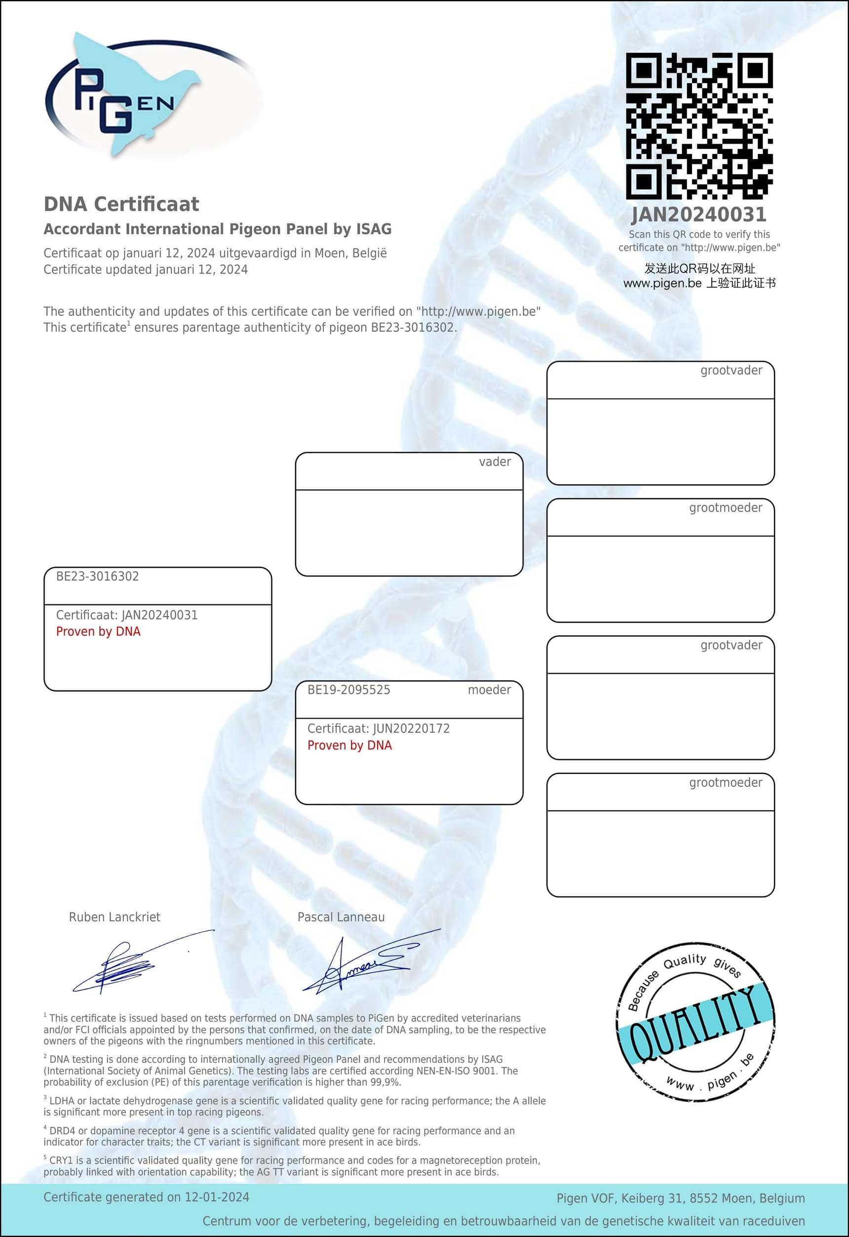 作育者: VELGHE PIGEONS 维尔赫信鸽