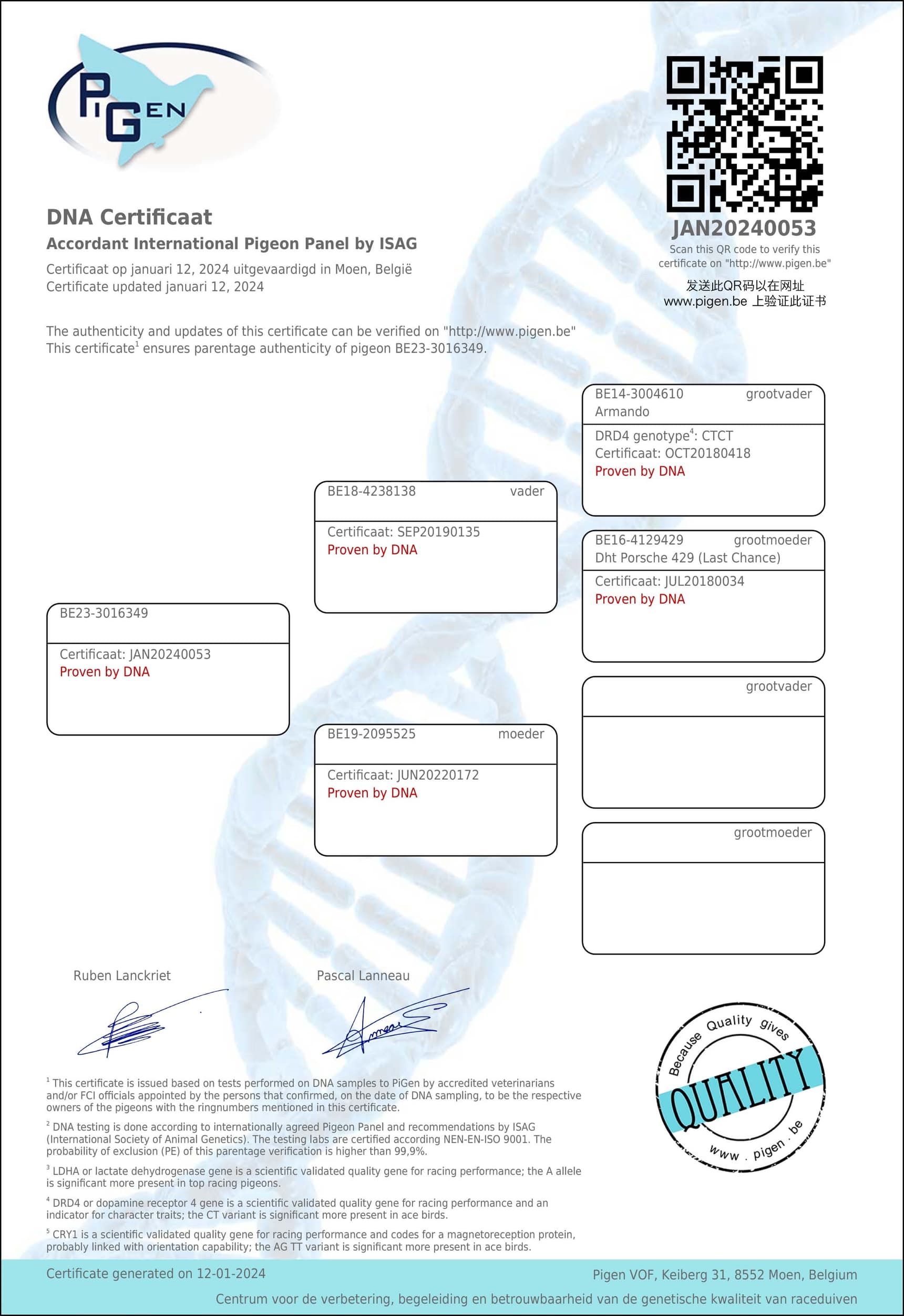 作育者: VELGHE PIGEONS 维尔赫信鸽