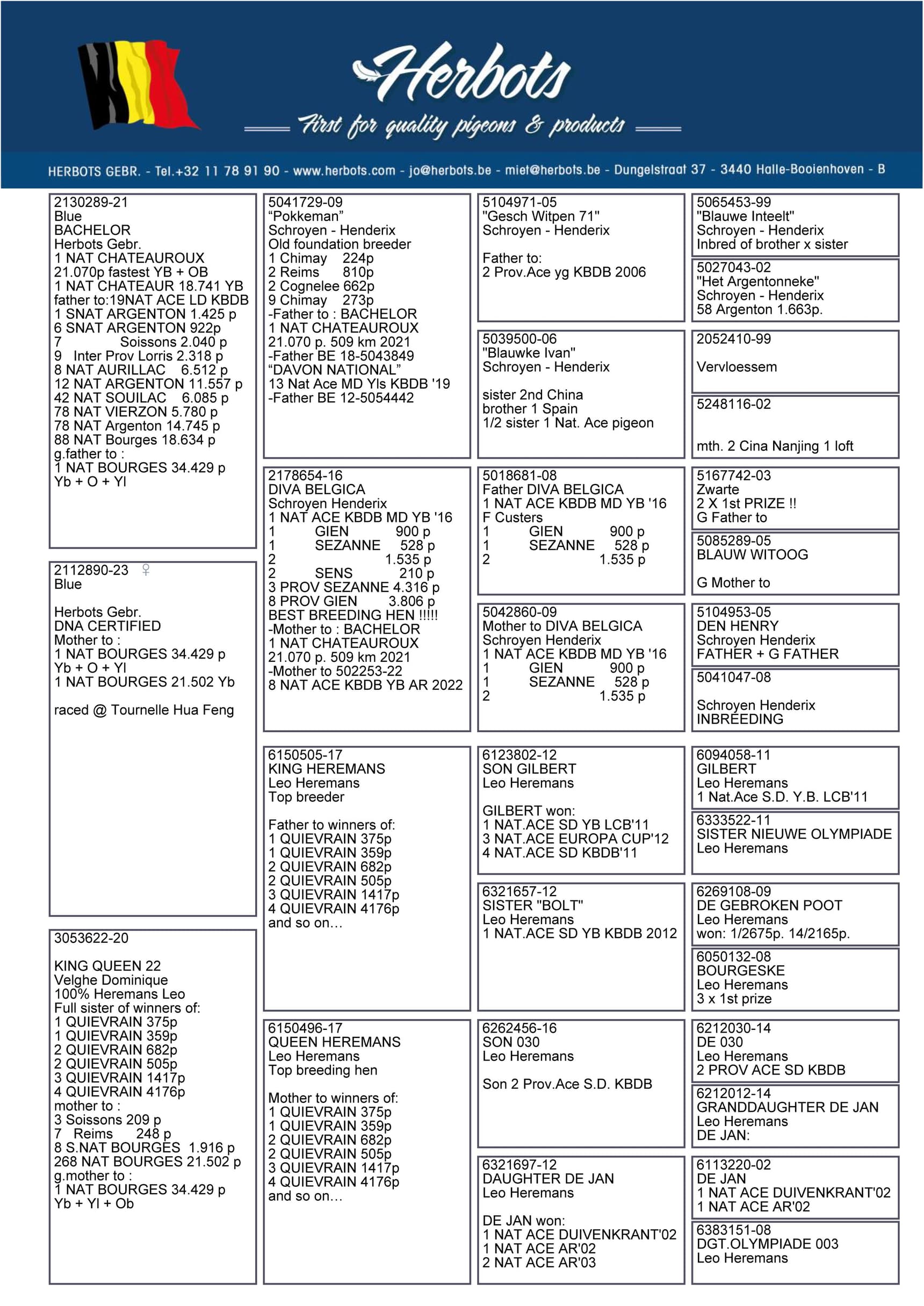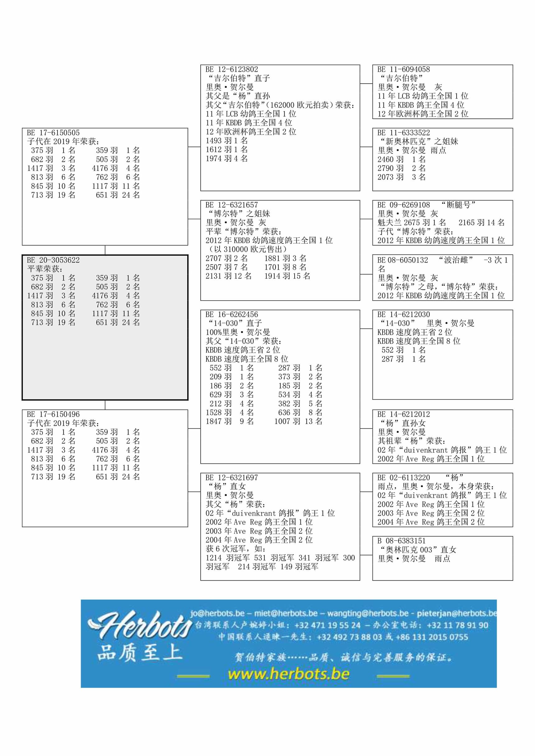 作育者: VELGHE PIGEONS 维尔赫信鸽