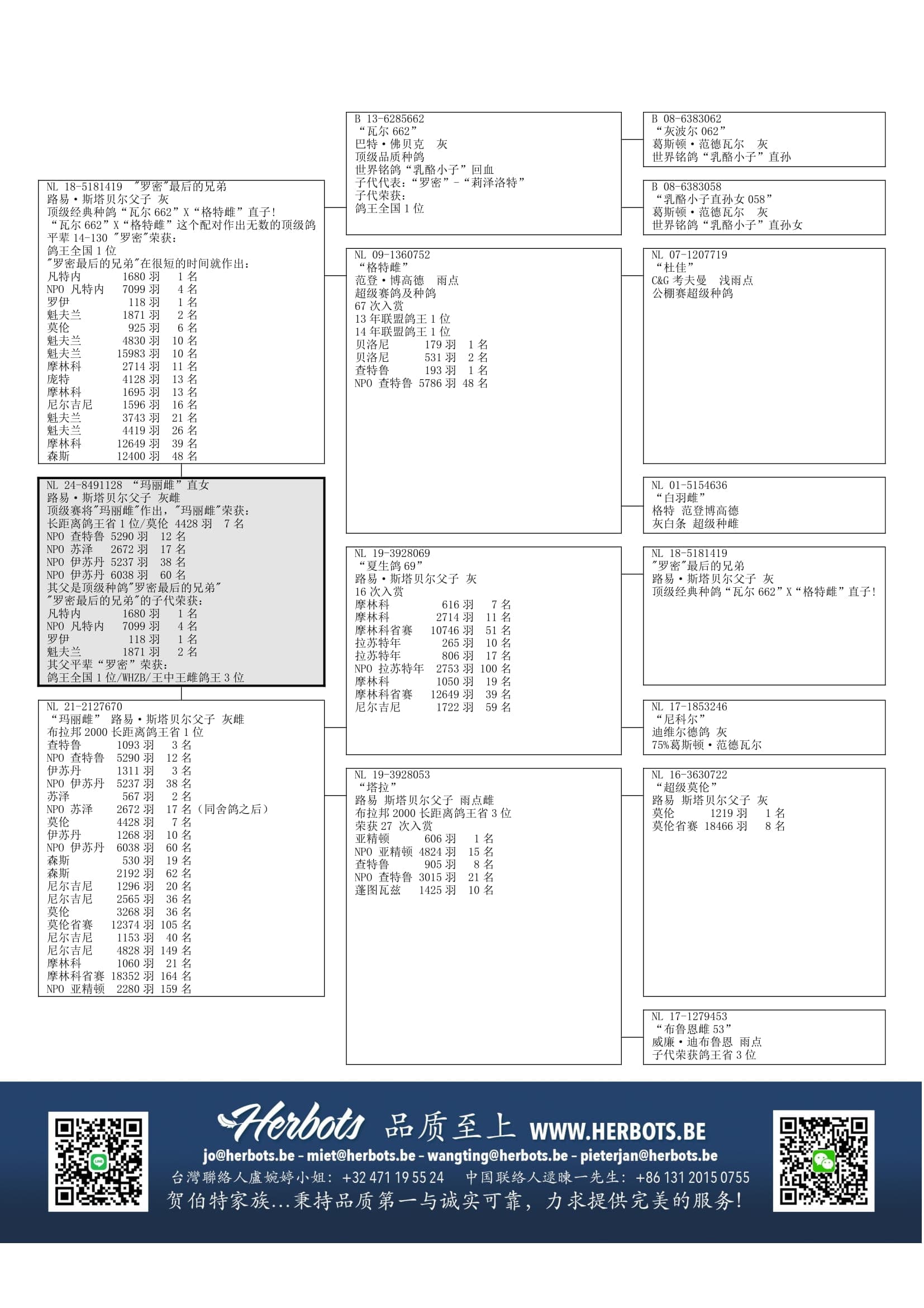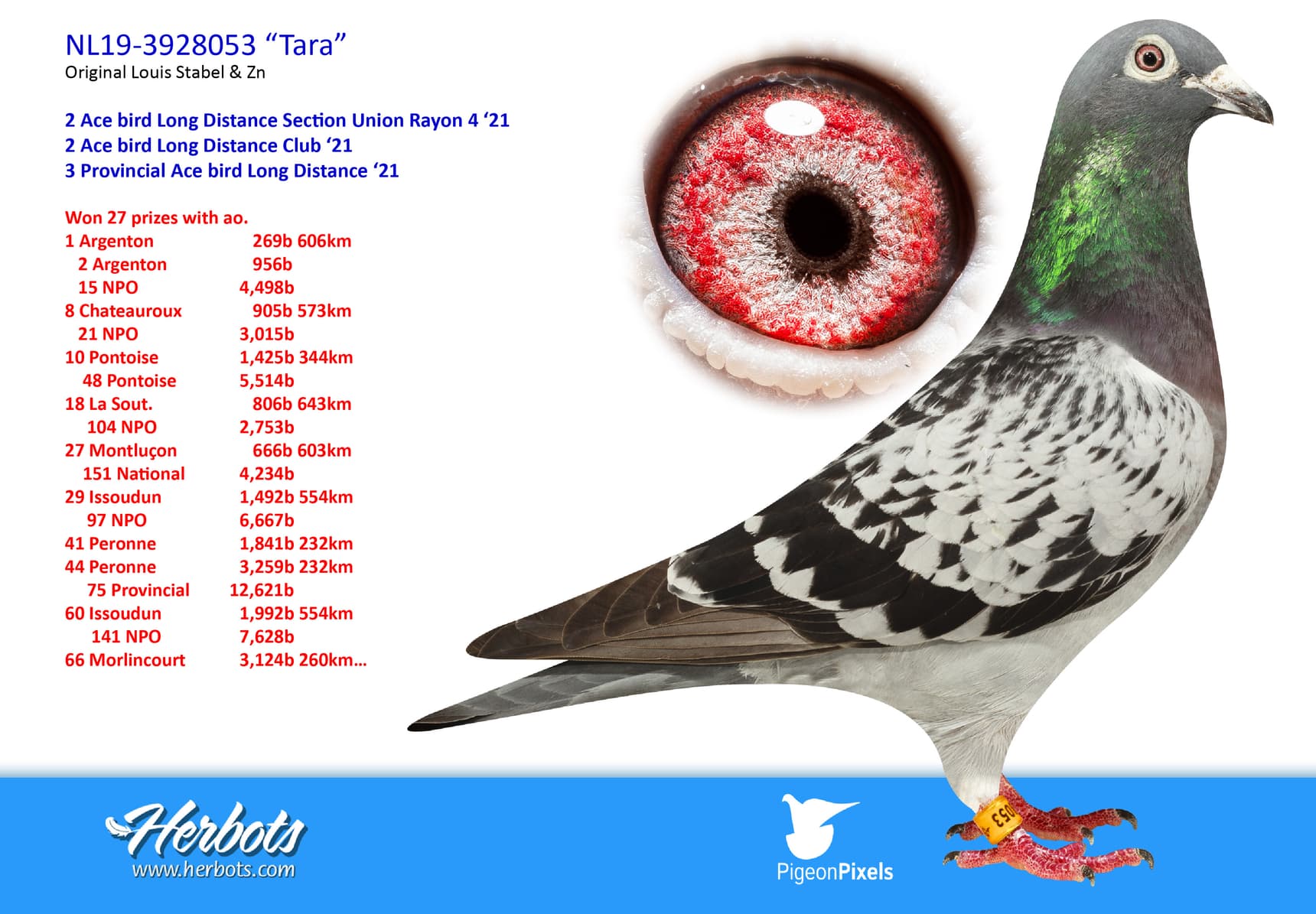 “夏生鸽 69” (荣获 16次入赏) x “塔拉” (”布拉邦 2000”长距离鸽王省3位)直女