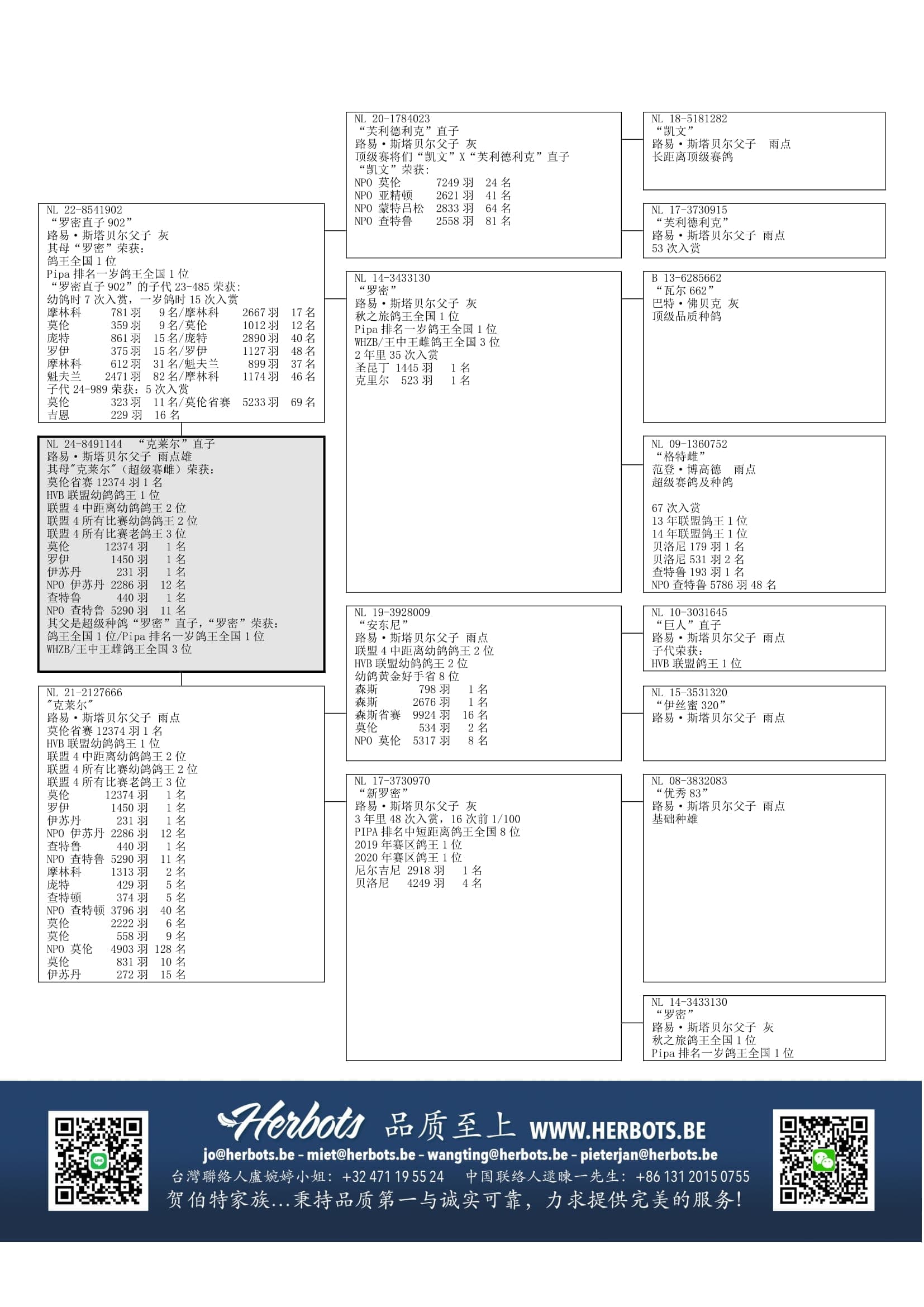 “安东尼” (4区中距离幼鸽鸽王2位) x “新罗密” (48次入赏 – 16 次前1/100 – Pipa排名 短/中距离鸽王全国8位 – 2,918羽1名 – 等等) 作出