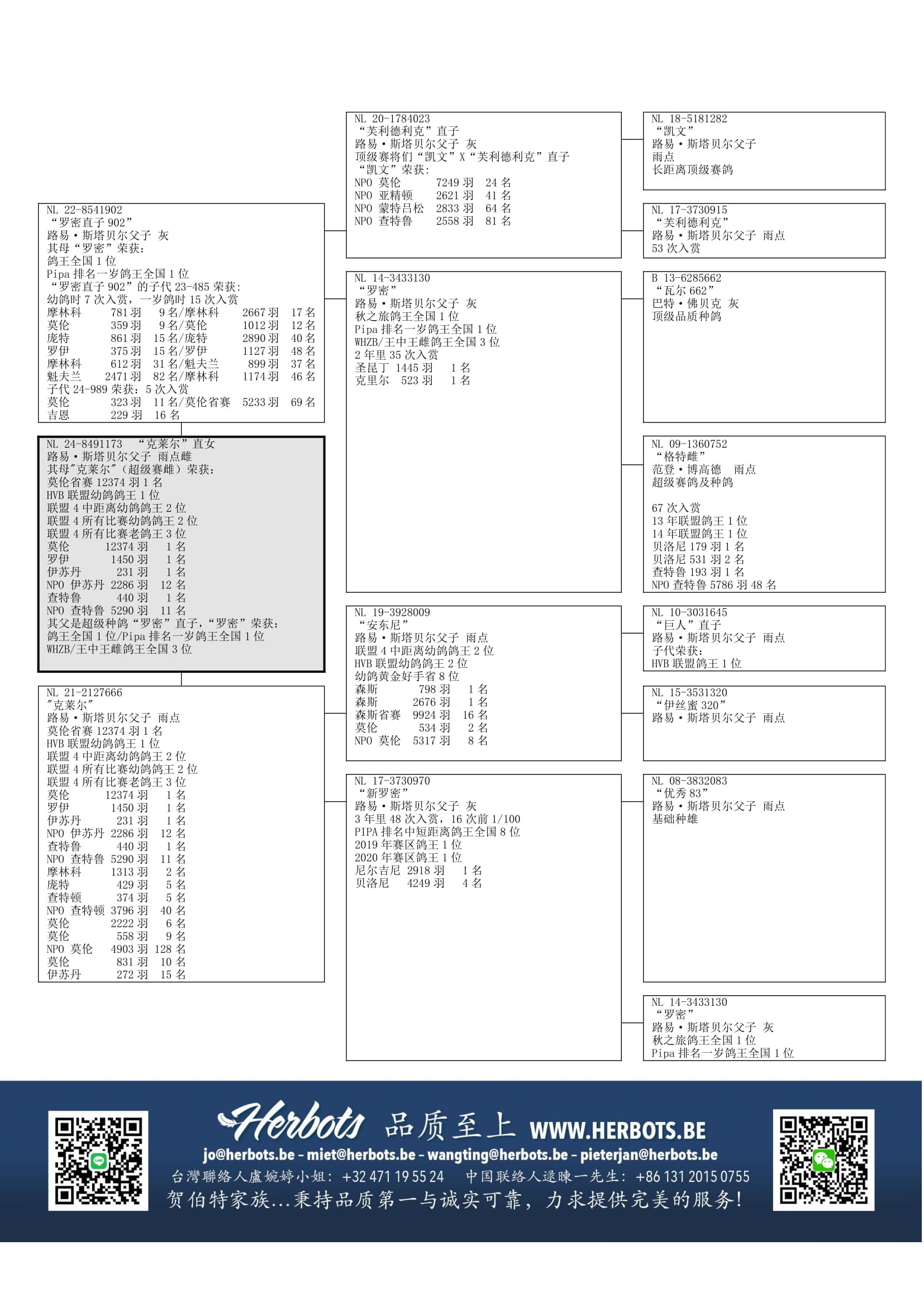 “安东尼” (4区中距离幼鸽鸽王2位) x “新罗密” (48次入赏 – 16 次前1/100 – Pipa排名 短/中距离鸽王全国8位 – 2,918羽1名 – 等等) 作出