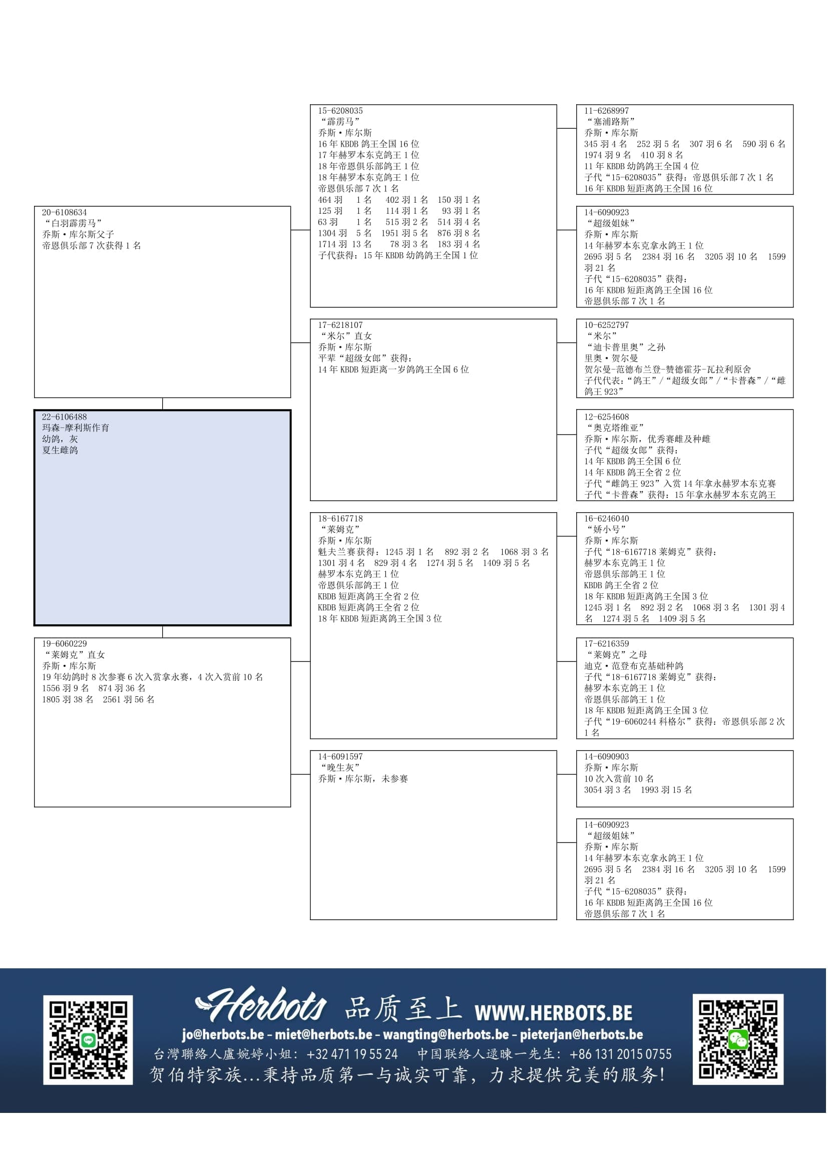 15年KBDB短距离幼鸽冠军鸽舍全国1位成员