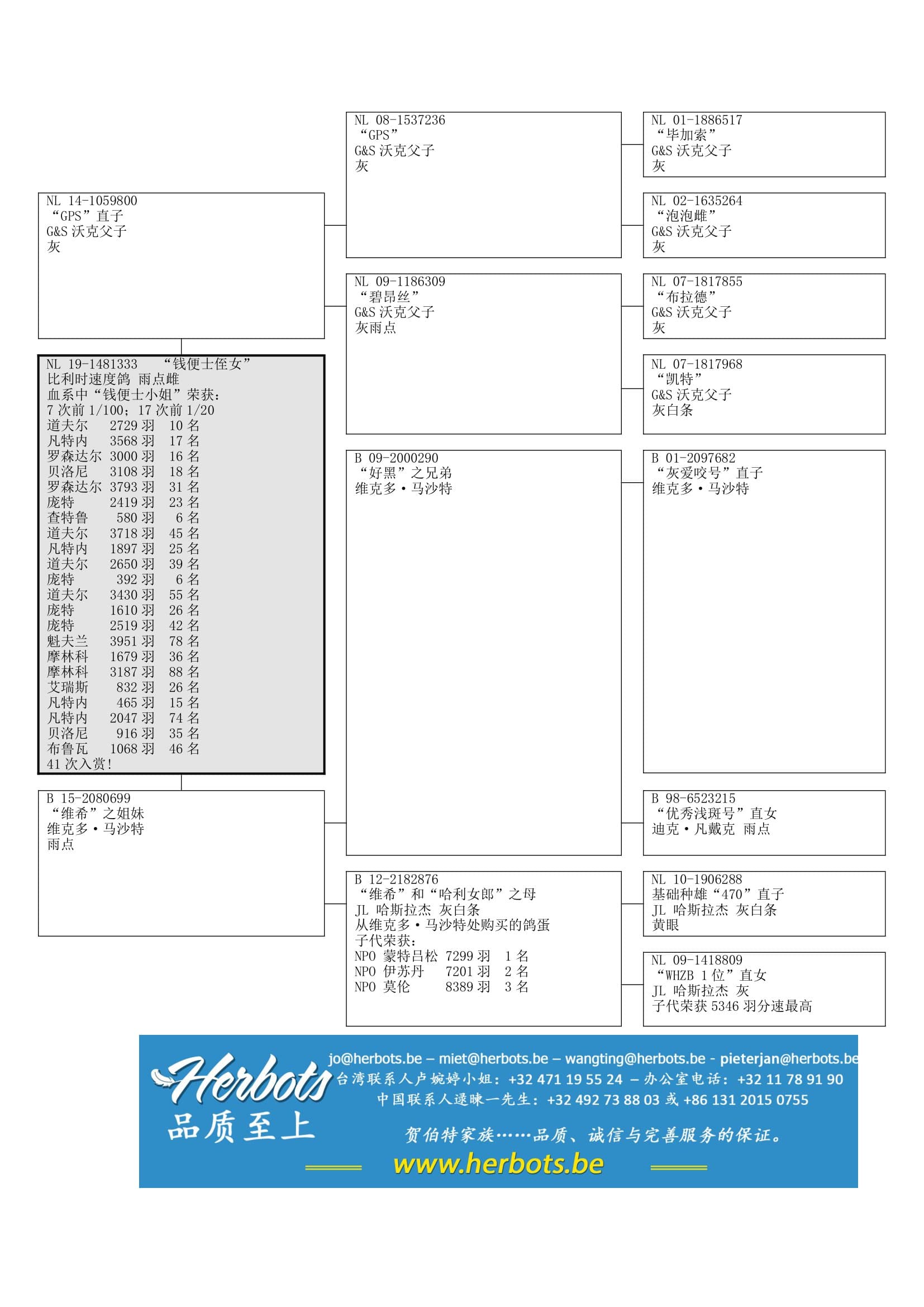 “布拉德” (WHZB鸽王全国7位) x “凯特” (一岁鸽王全国3位)作出