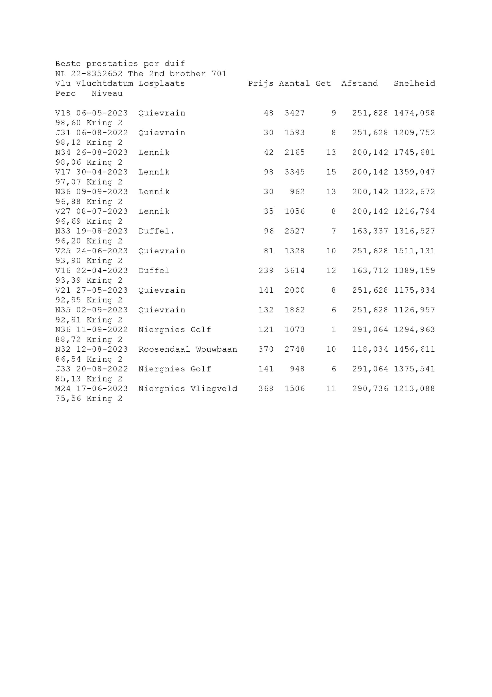 2023年世界最佳短距离鸽荷兰1位