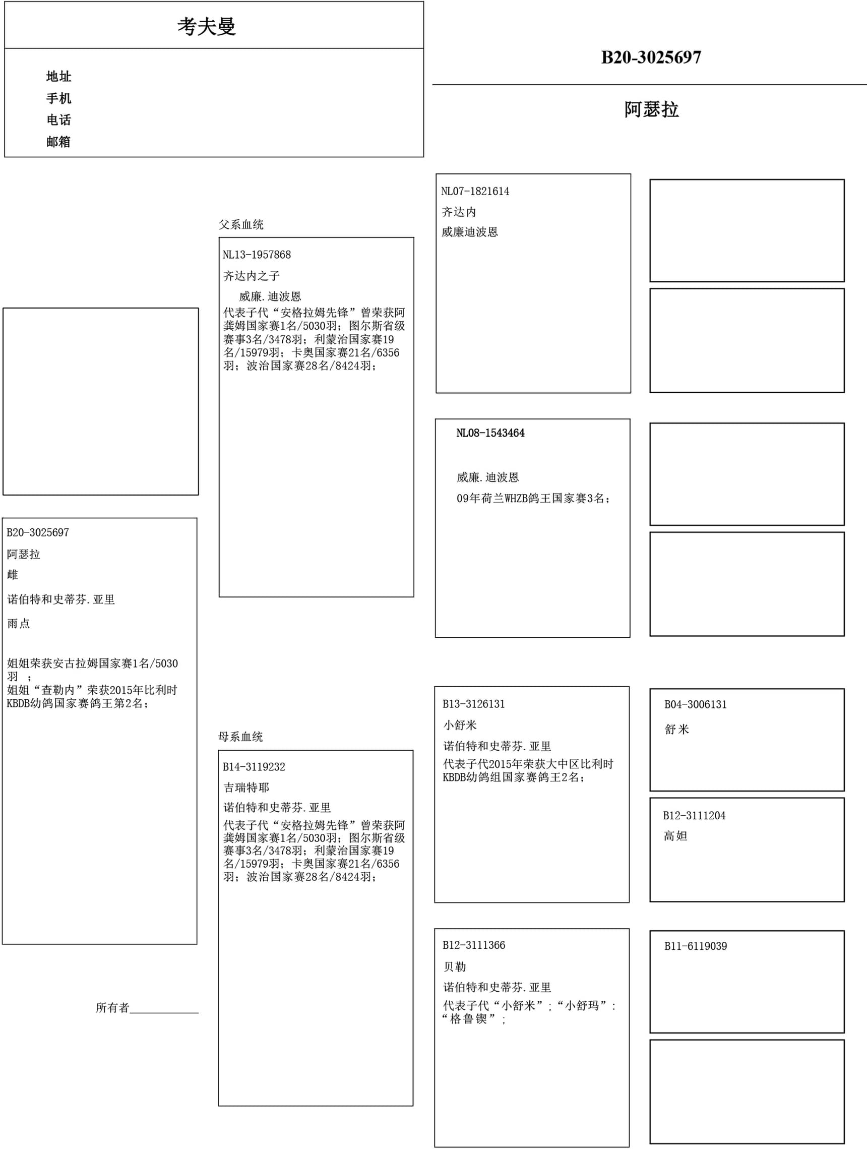 出自配对:世界名鸽“齐达内”(2名 国家级鸽王短/中距离 TBOTB 08年– 基础种鸽 x ““罗萨莱恩”” (3名国家级鸽王WHZB ’09)