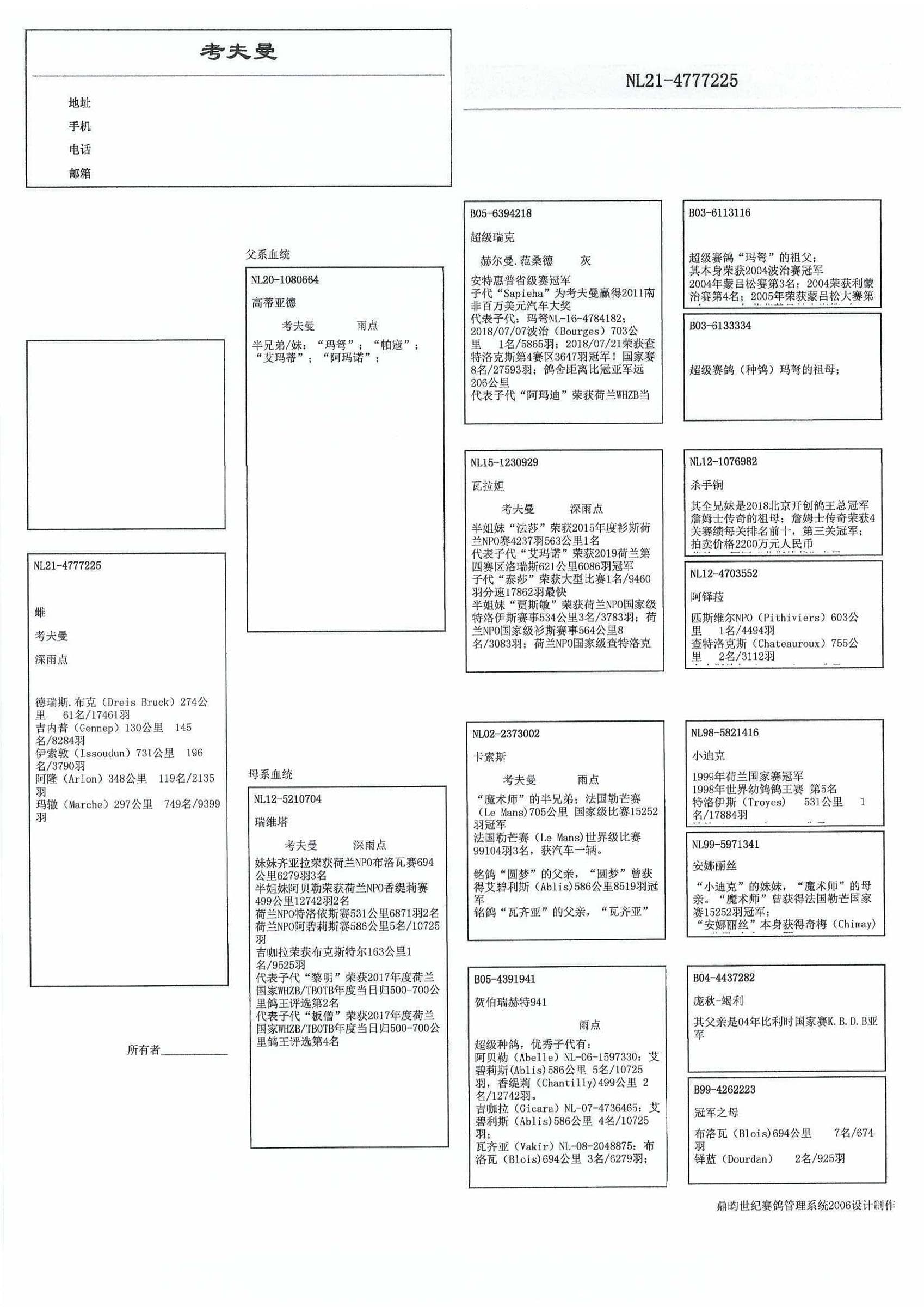 5名全国鸽王WHZB 2021