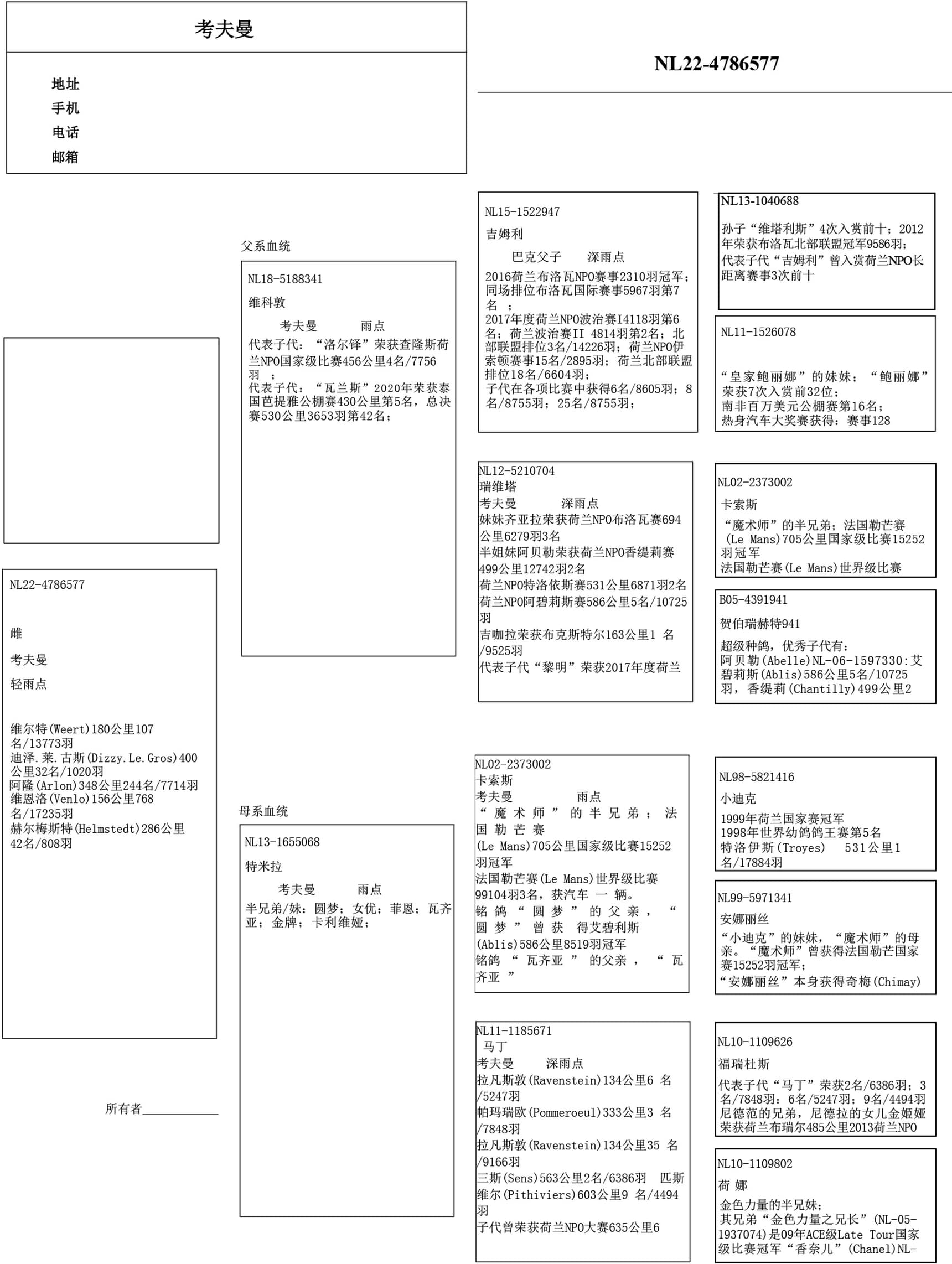 “卡索斯” (基础种鸽配对 和出自配对: