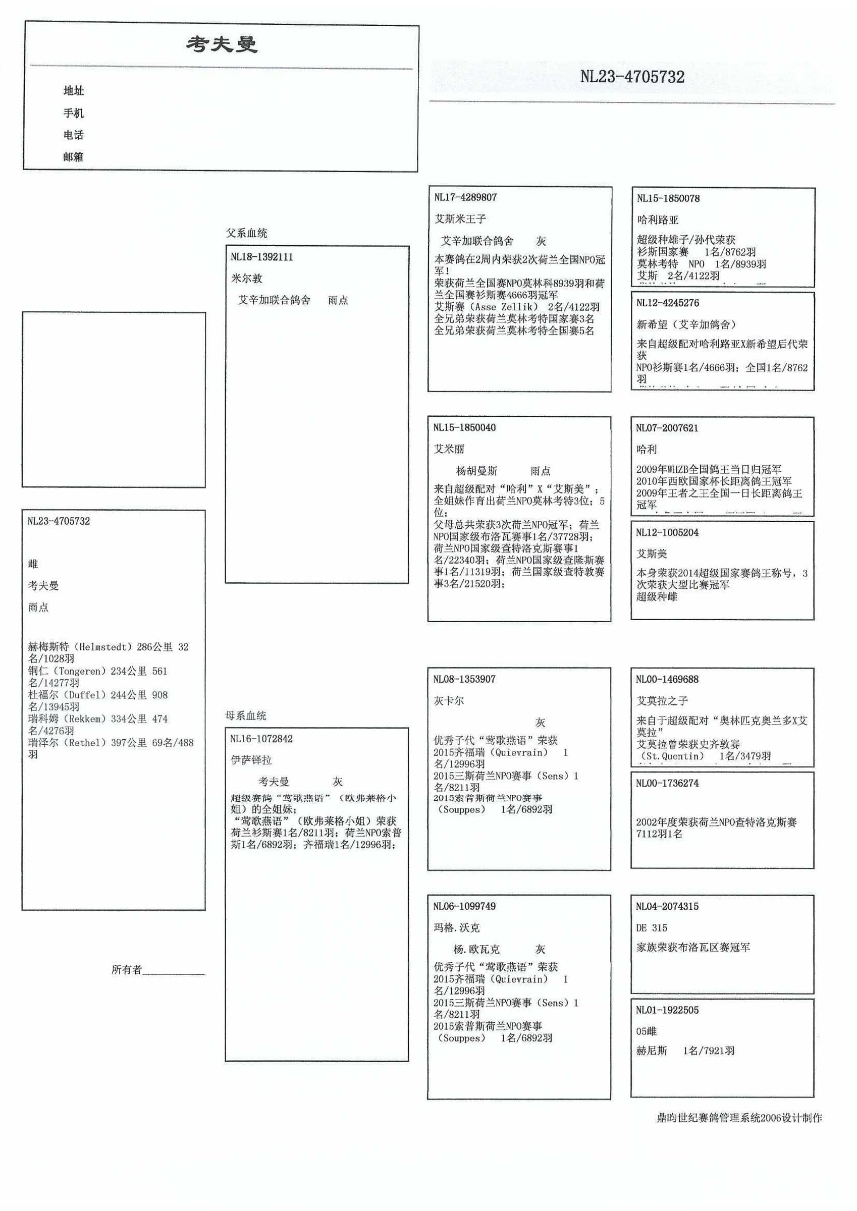 世界名鸽 “哈利” (1名 全国 当日归赛事鸽王排位 NPO 2009 杨.胡曼斯原舍) x “艾斯美” (1名 全国鸽王’14 和 1名 NPO 查隆 –最快11,319羽)