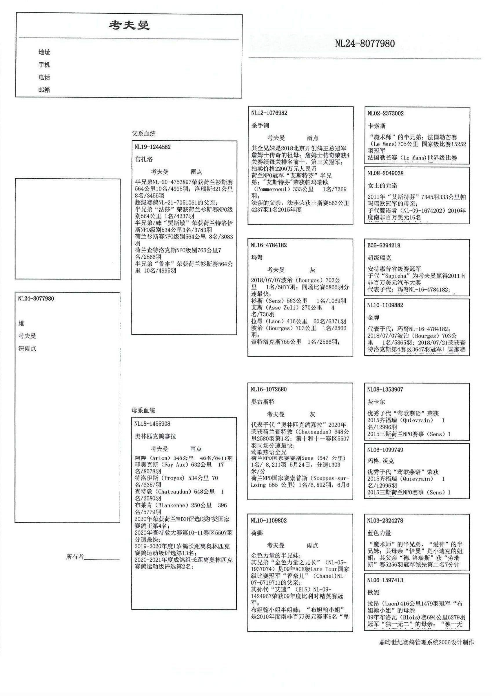 “雌鸽杯”NPO鸽王排位3位 2021