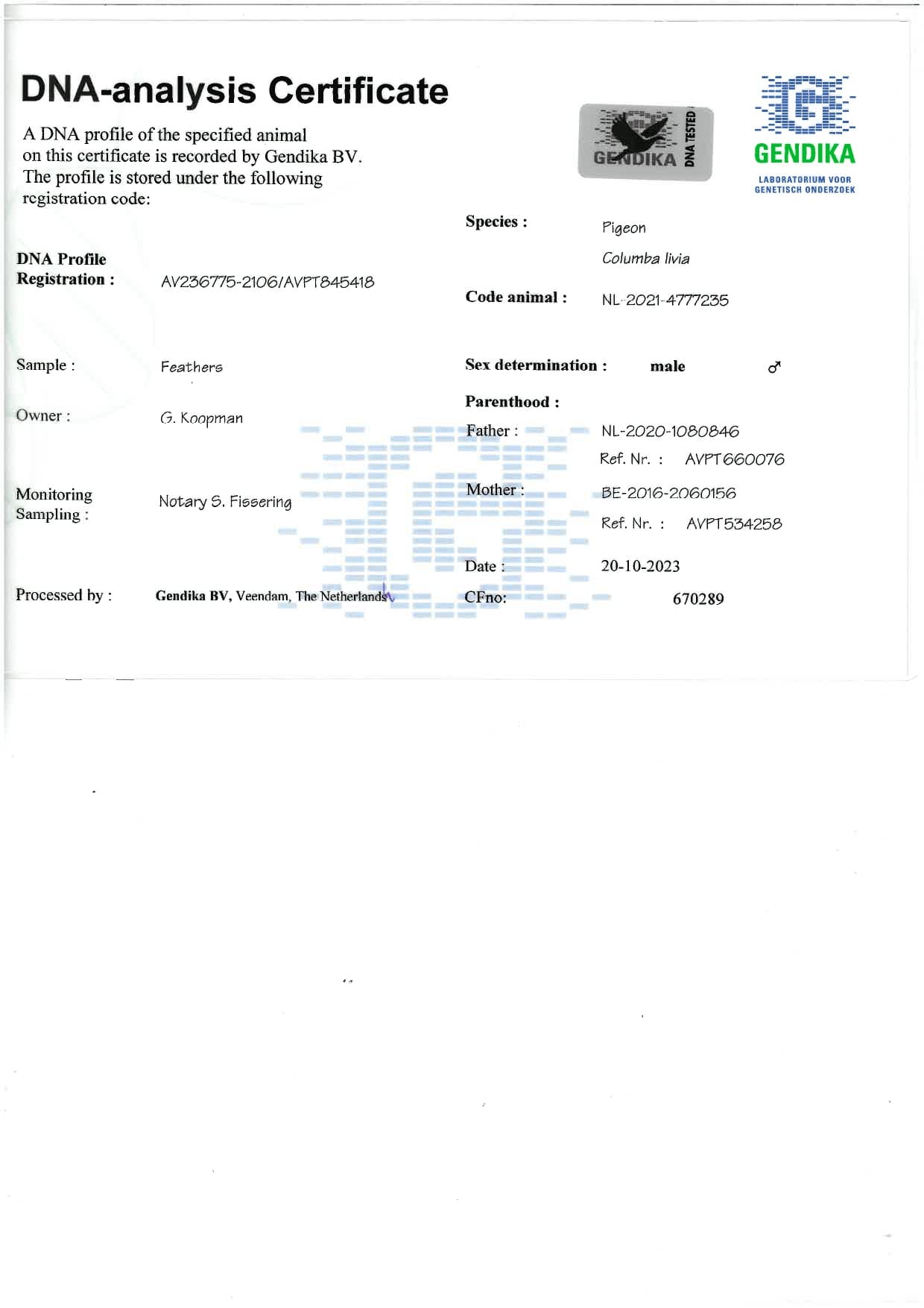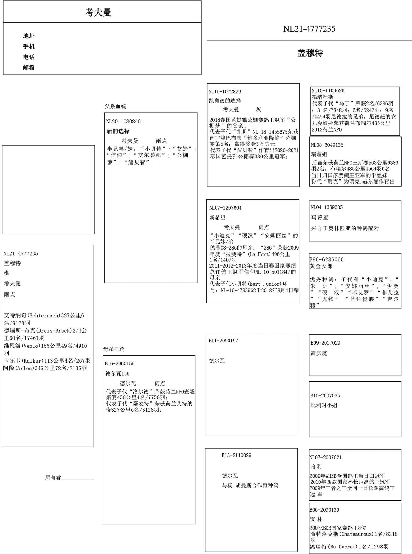 世界名鸽“哈利” (杨.胡曼斯) x “宝琳”的孙女(8名 国家级 鸽王 KBDB 和 基础种鸽)