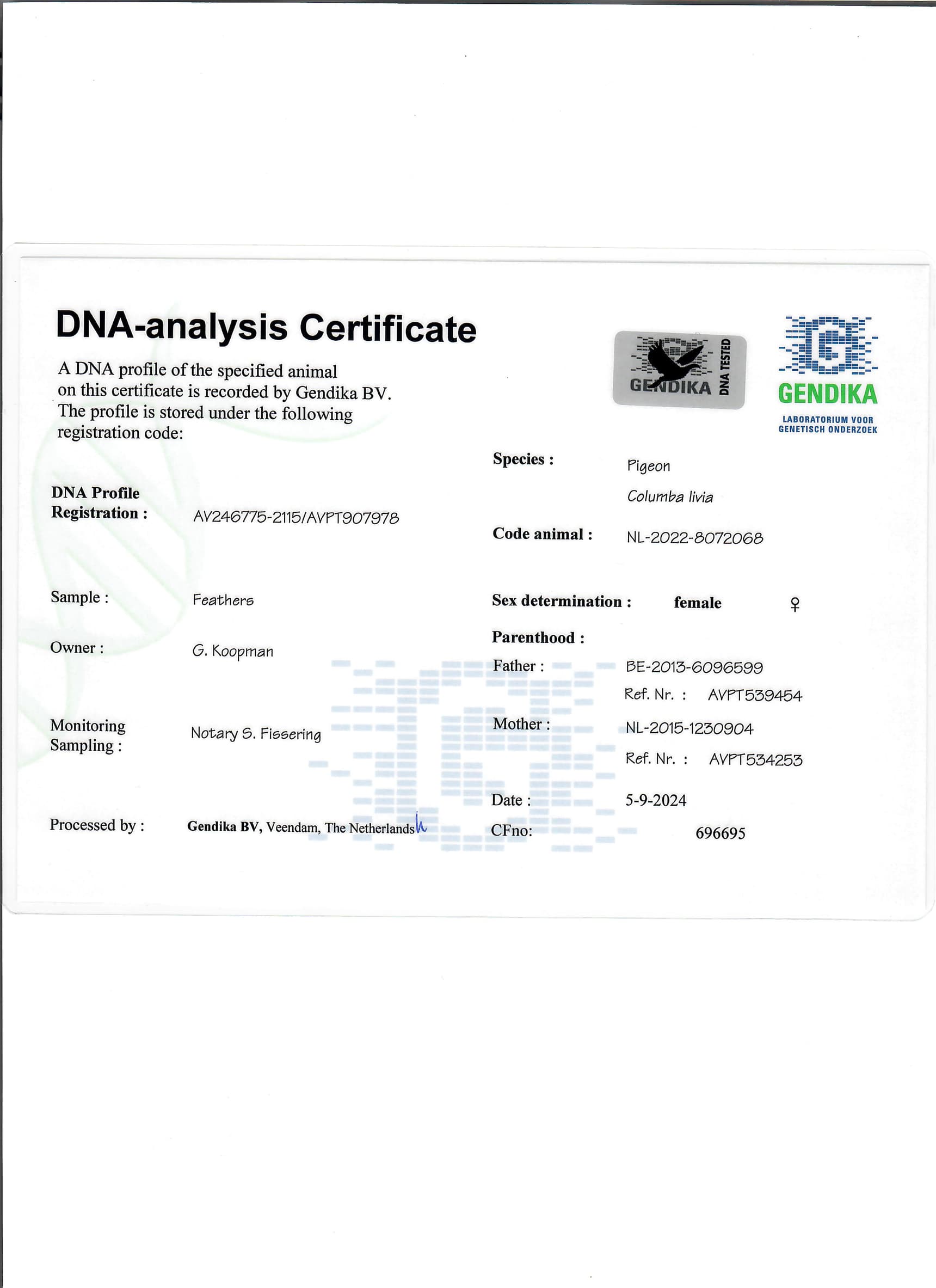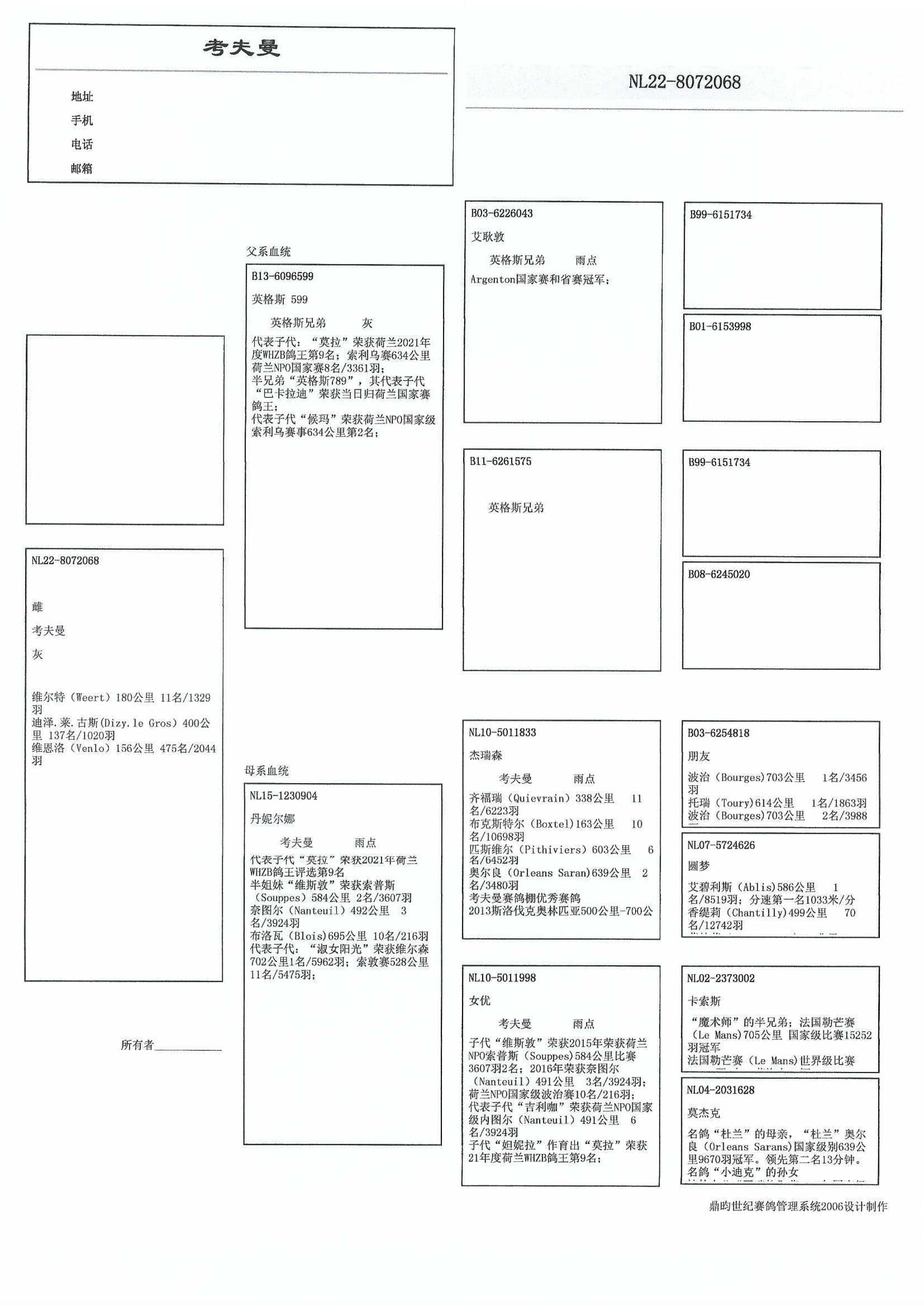子代 “巴卡拉特”: 1名 全国鸽王排名当日归赛事