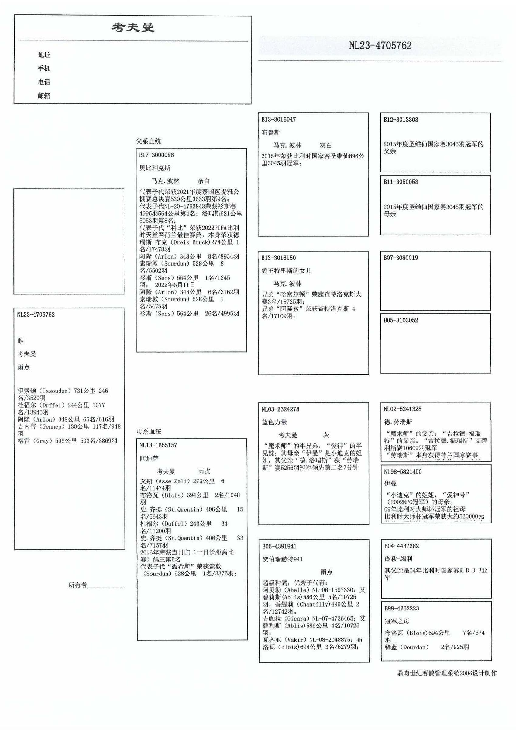 “鸽王特里斯的女儿” B13-3016150
