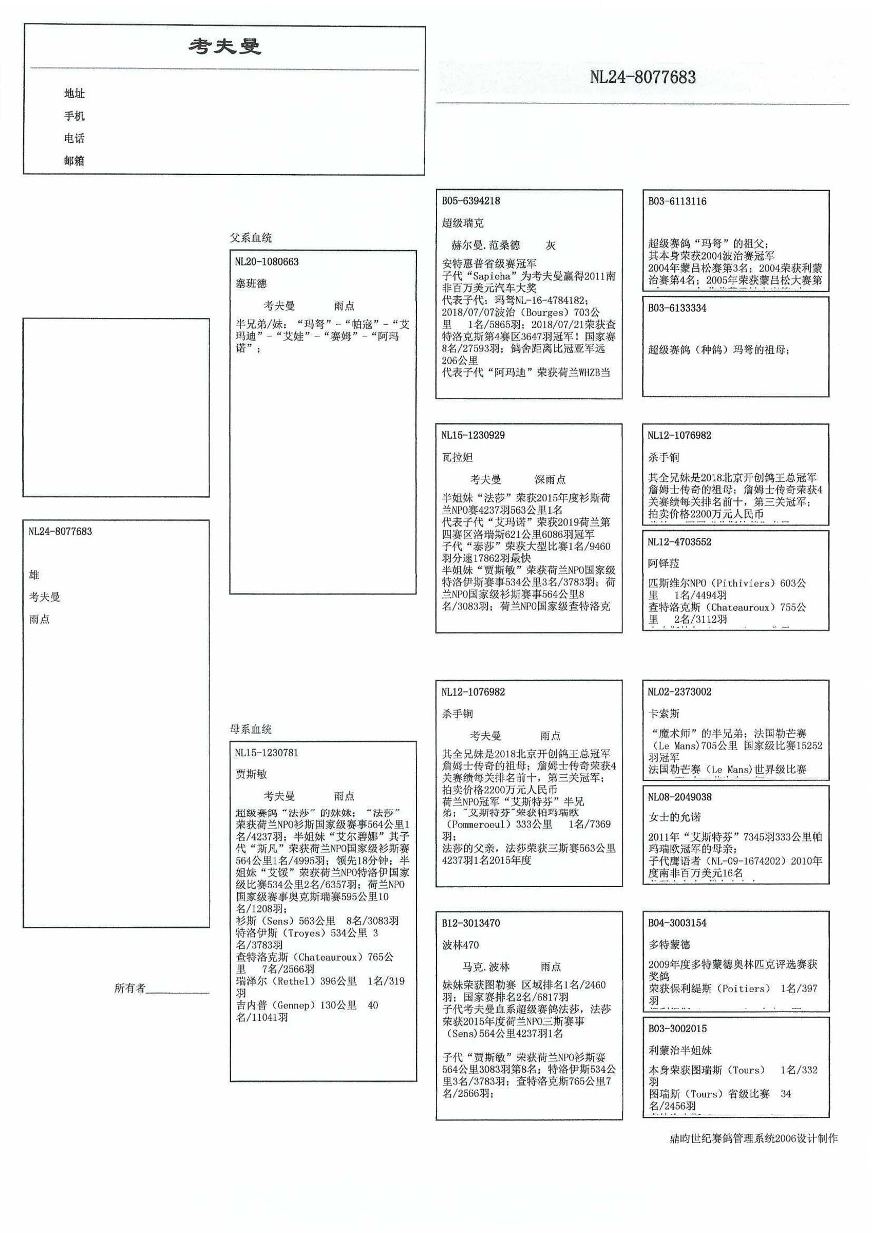 4名全国鸽王 长距离 WHZB/TBOTB