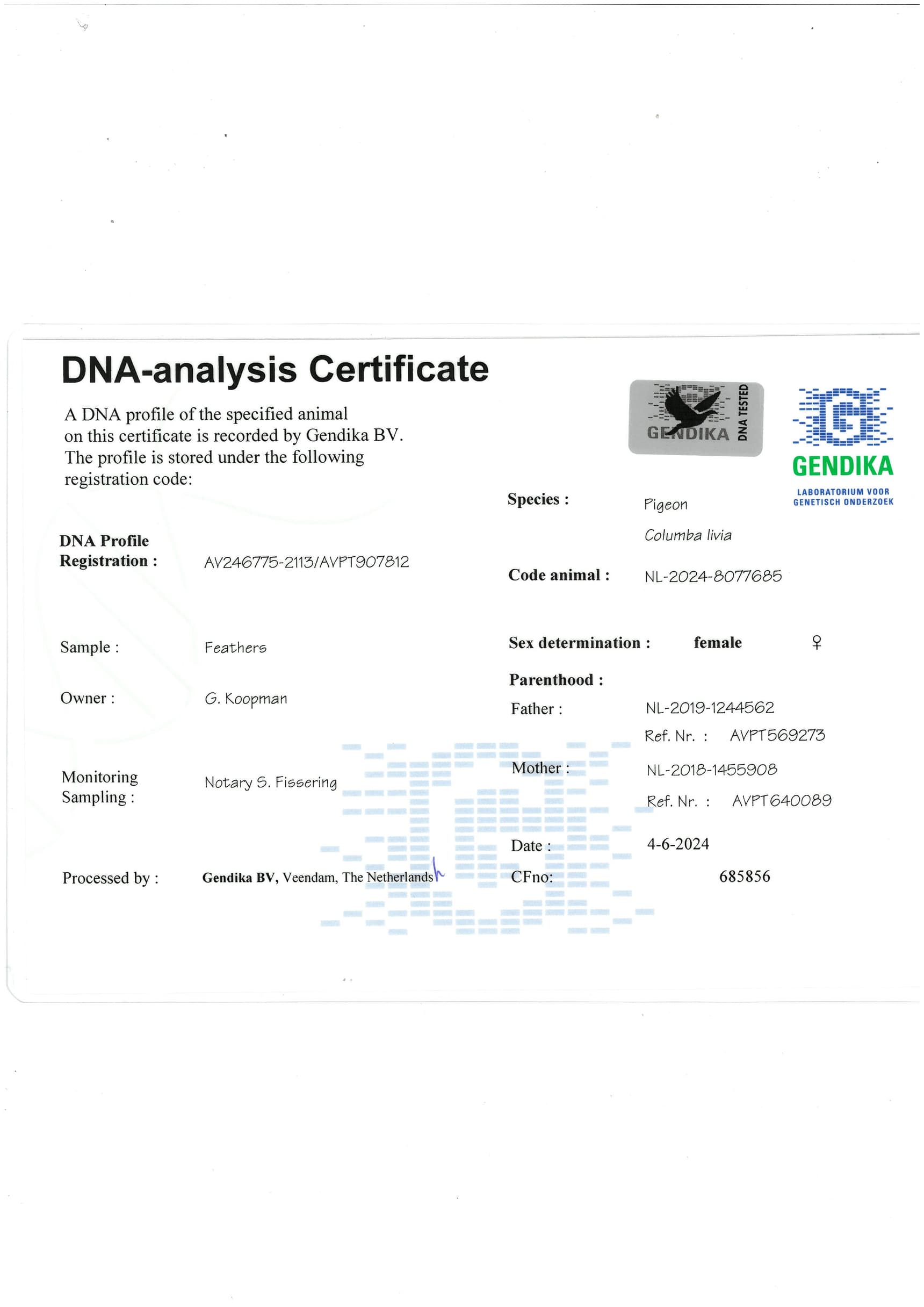 “詹姆士传奇”的叔祖父(1名开创者俱乐部鸽王– 拍卖成交价278万 欧元)