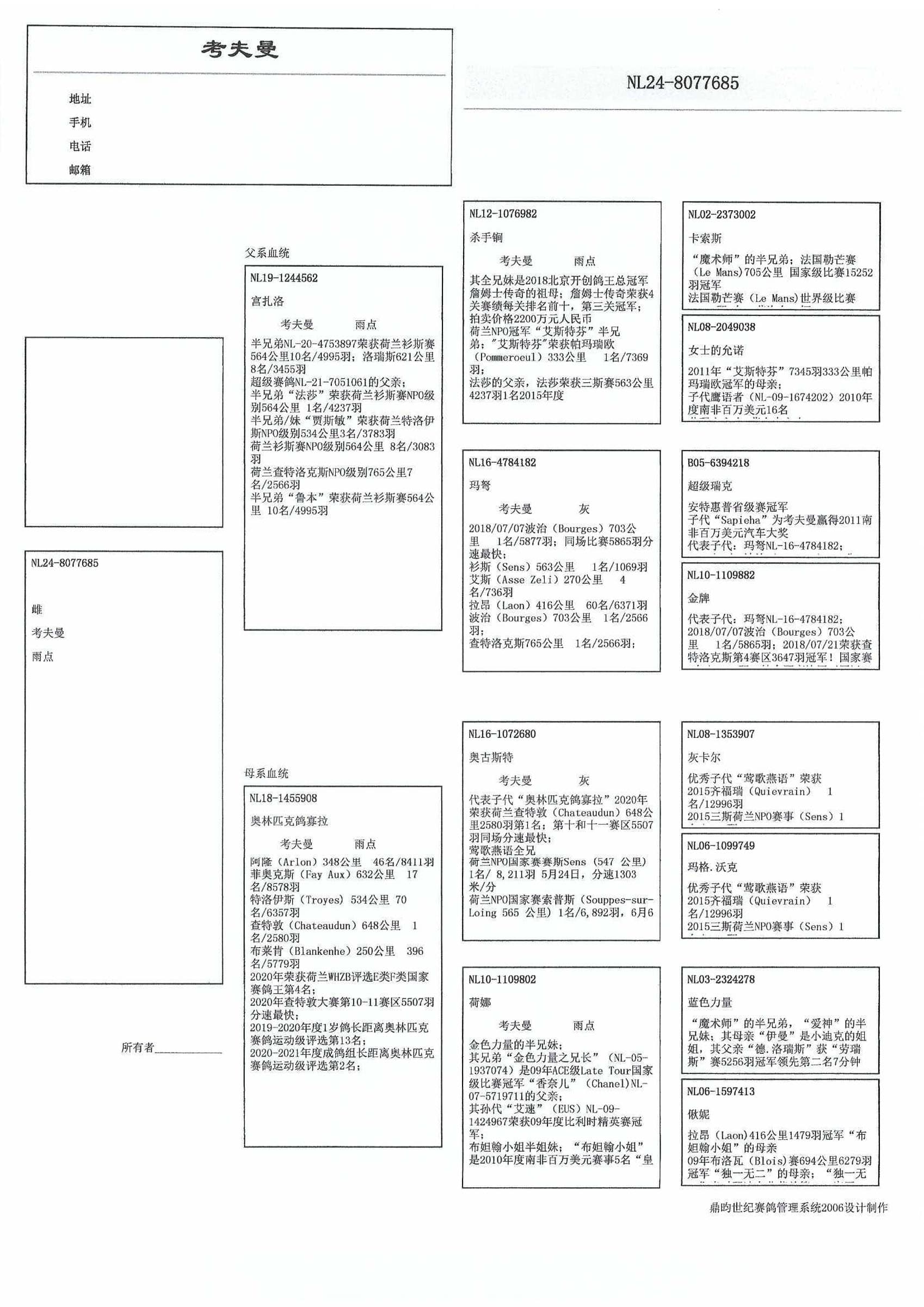 3名 NPO“雌鸽杯”鸽王排位 2021