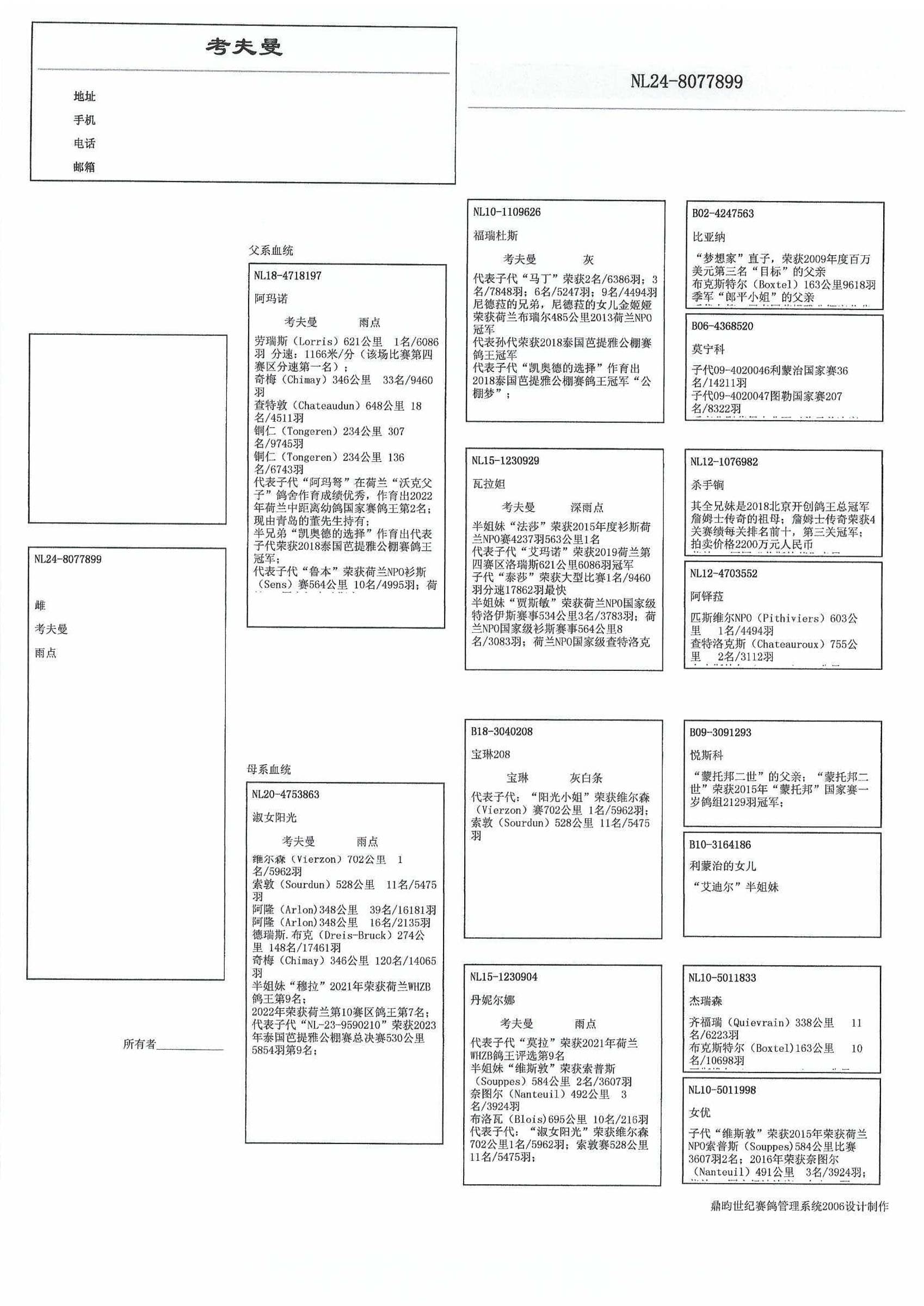 “莫菈” (9名 全国鸽王 WHZB)