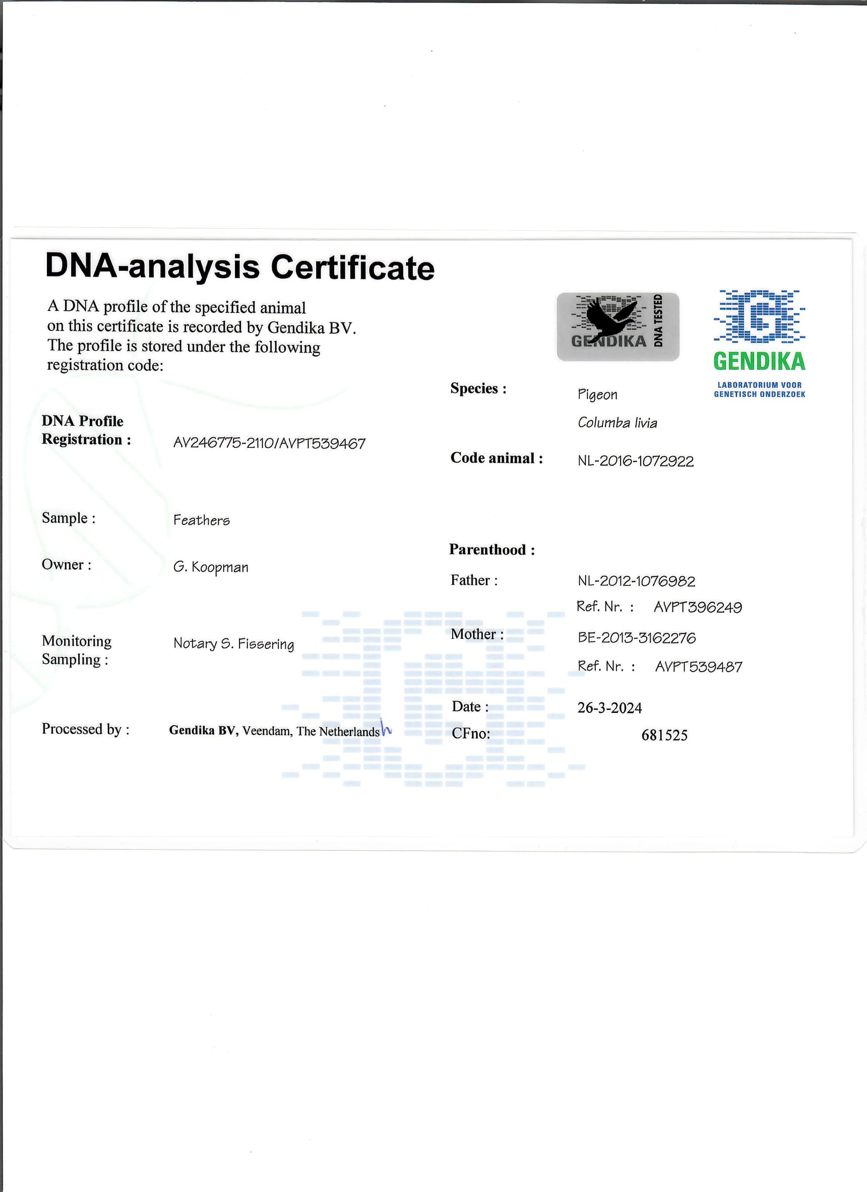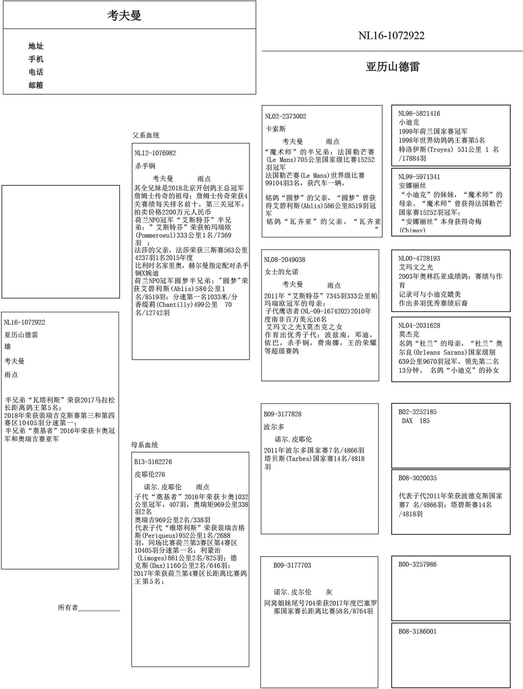 侄子“詹姆士传奇” (荣获开创者鸽王冠军,拍卖价格278万欧元)