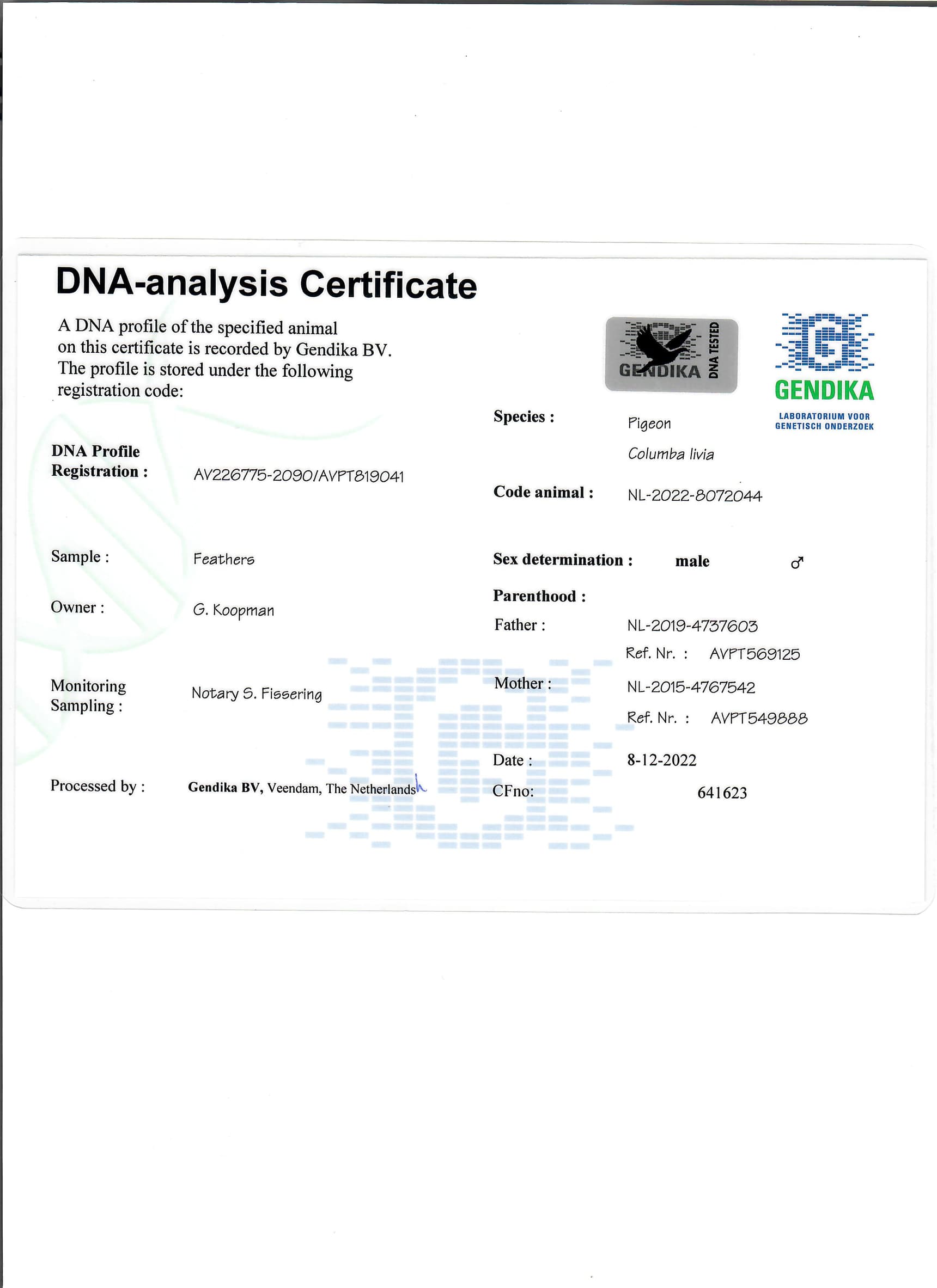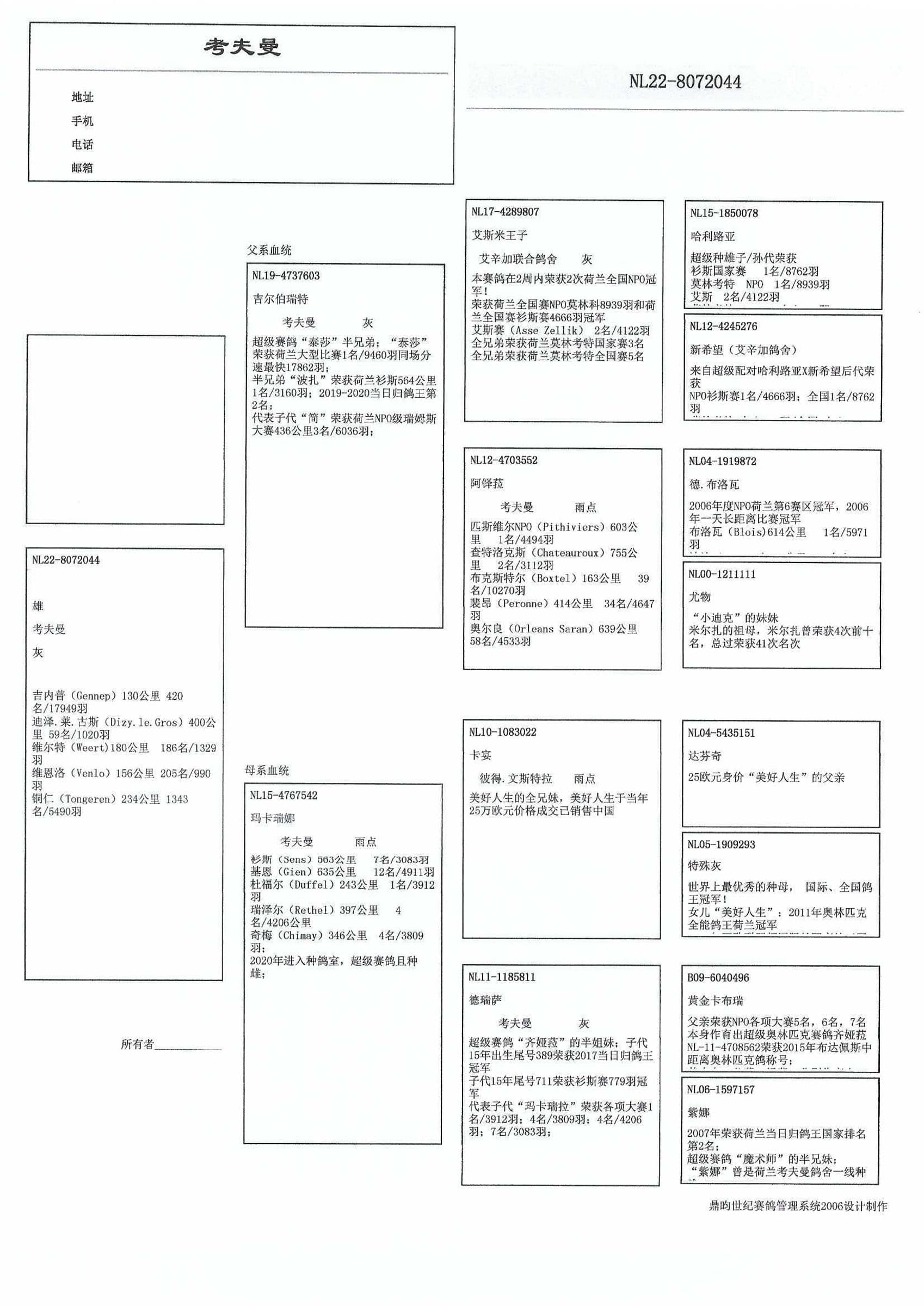 1名 全国鸽王“杜嘉 维塔” 和 “香奈儿5号”)x “德瑞萨”