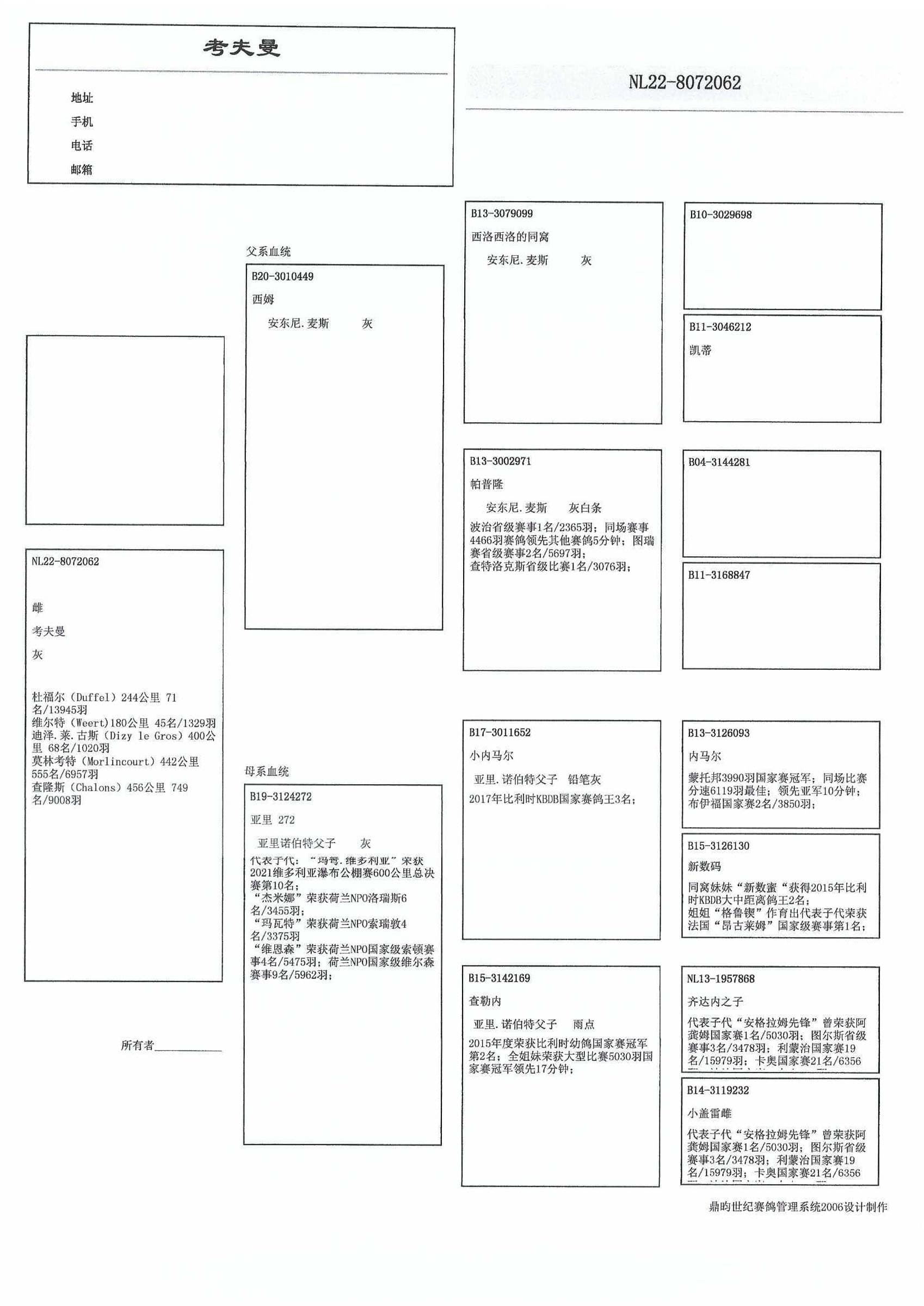 3名 全国鸽王KBDB 中距离幼鸽组 ‘17