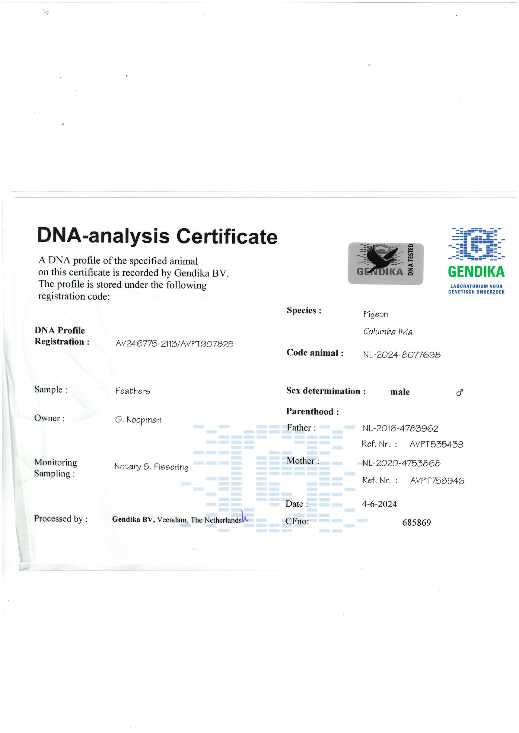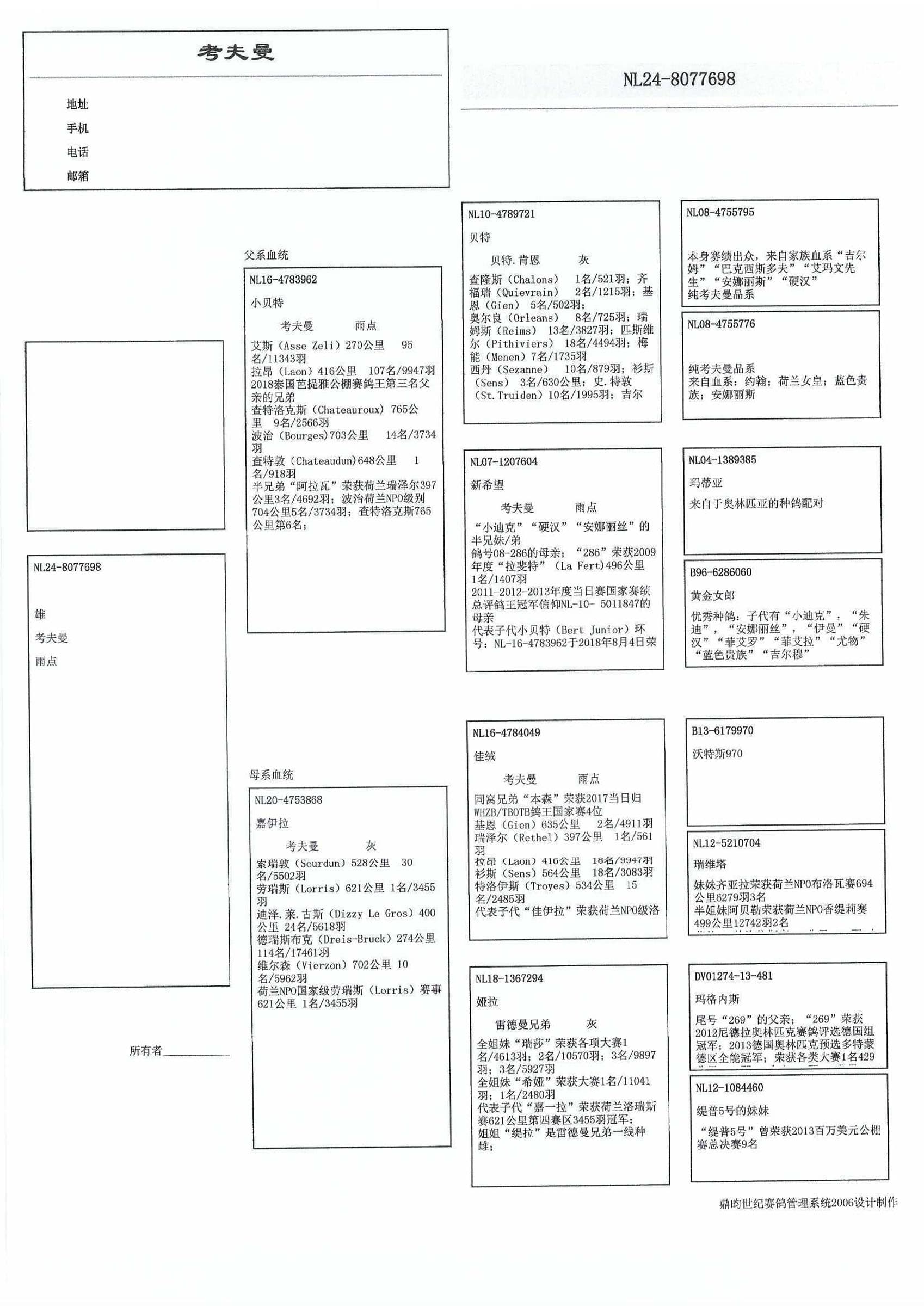 “贝特” (1名 全国鸽王 当日归赛程“长镜头”评选 ’04) x “新希望” (“黄金女郎”的女儿)