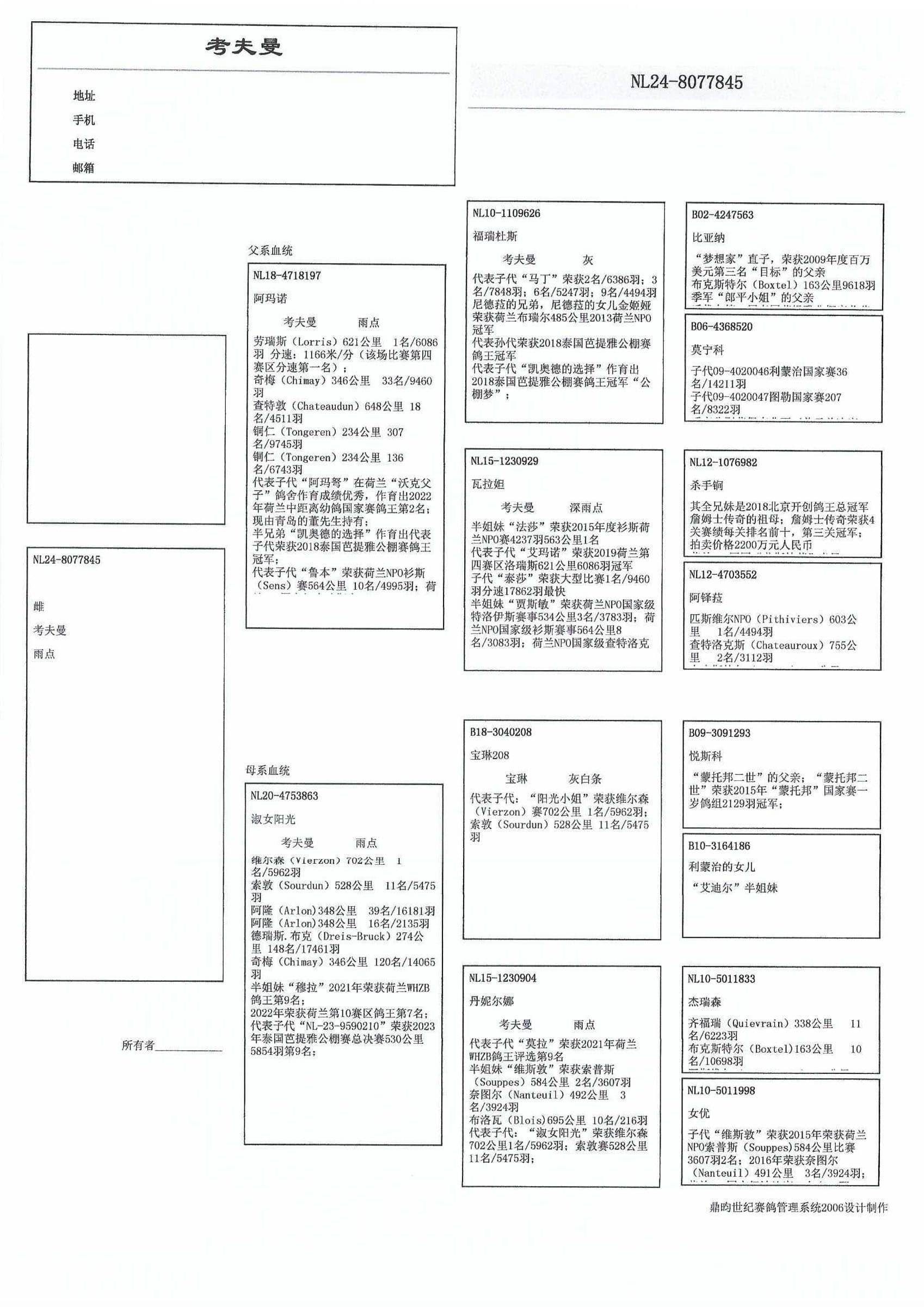 1名 全国第4赛区 洛瑞斯 6,086羽