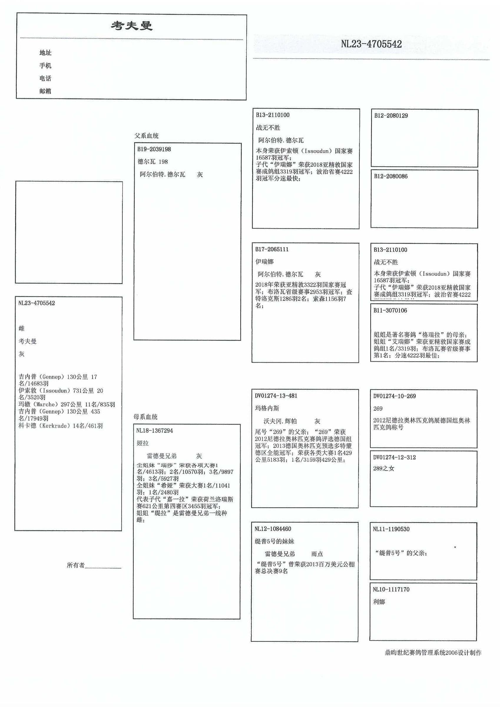 玛格内斯” (出自:奥林匹克鸽“德269” – 沃夫冈.辉帕原舍) x “缇普5号的妹妹” (全姐1名 NPO 艾瑞斯10,735羽 和  9名 决赛南非百万美元公棚 ’13)