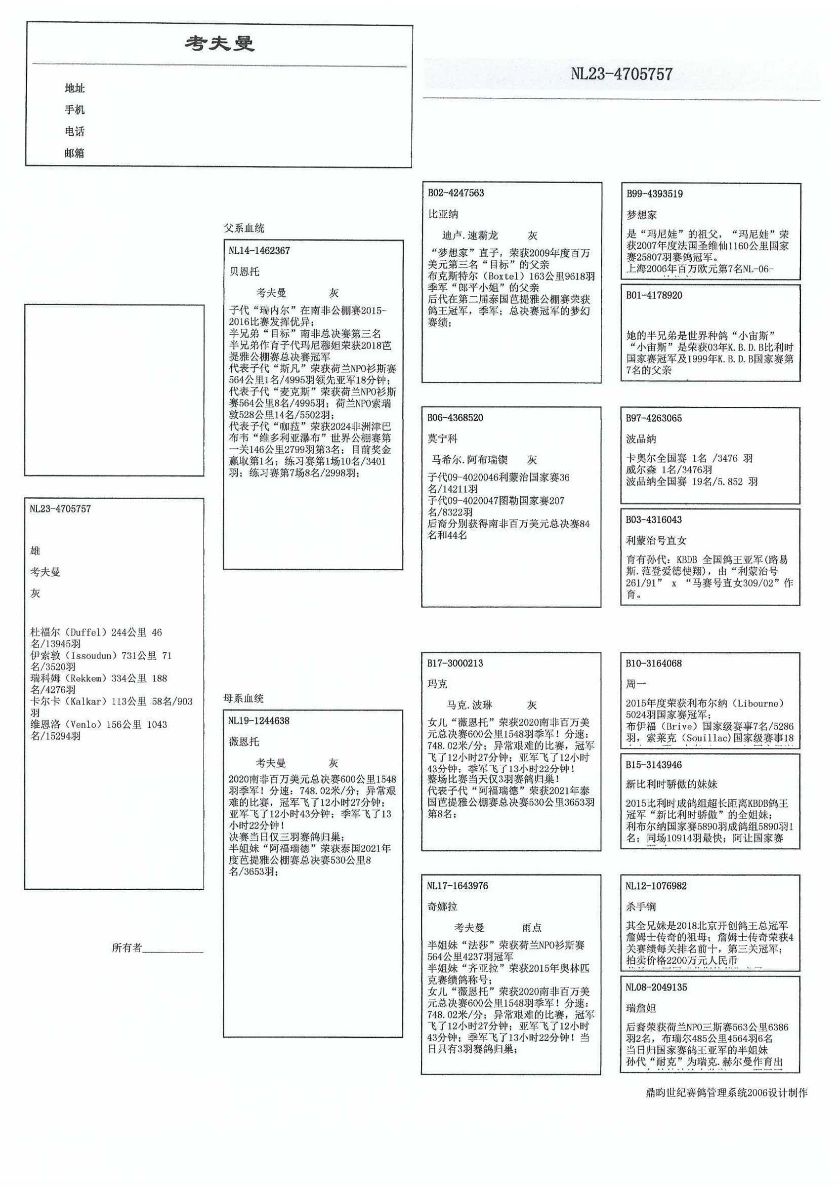 “周一” (1名, 7名, 18名, 42名 和81名 全国 冠军) x “新比利时骄傲的妹妹”(全姐“新比利时骄傲” 1名 全国鸽王和 1名 全国 利布尔纳)