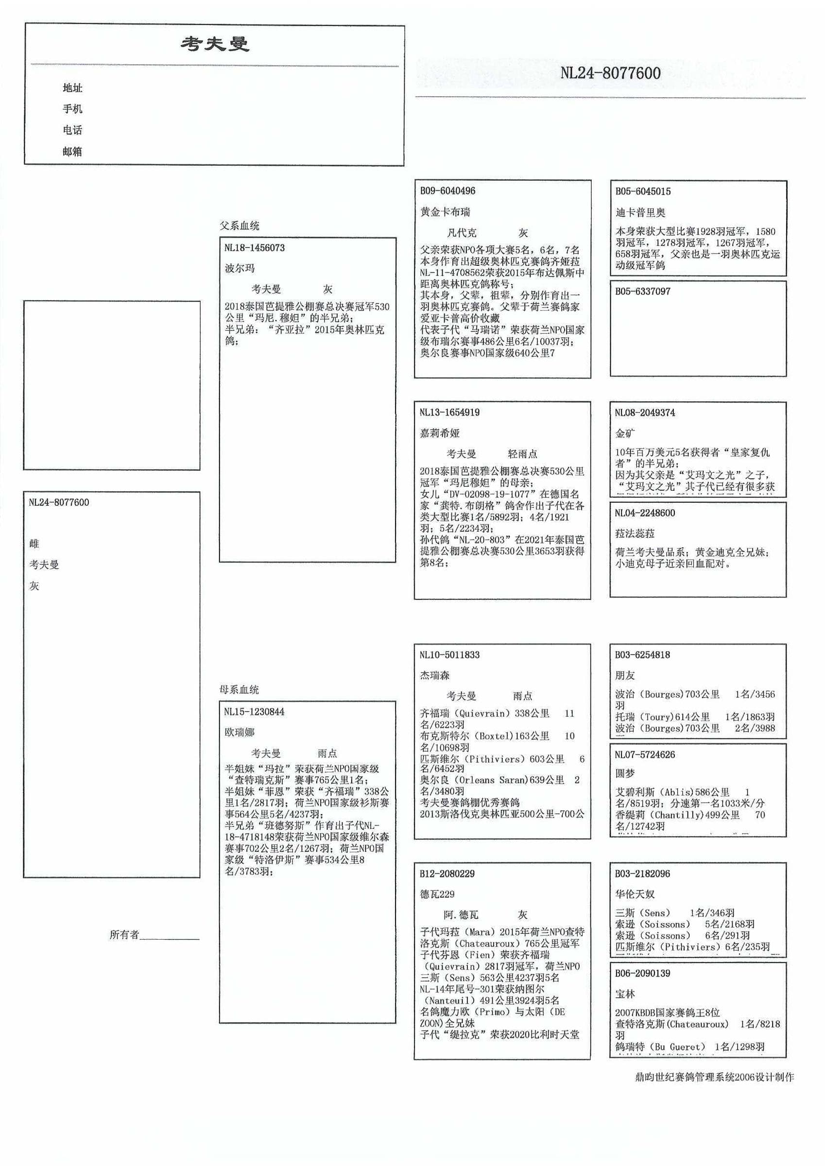 代表子代获得 1名 17,000羽 (荷玛兄弟使翔)