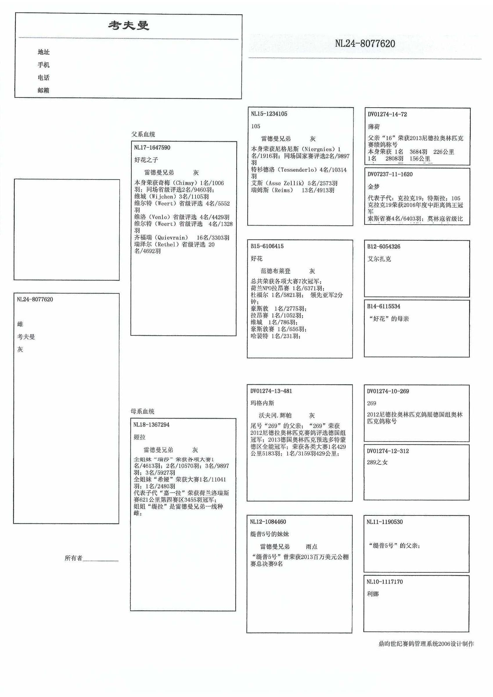 “DV17-691” (11名 德国全国鸽王排位沃夫冈.辉帕 原舍)