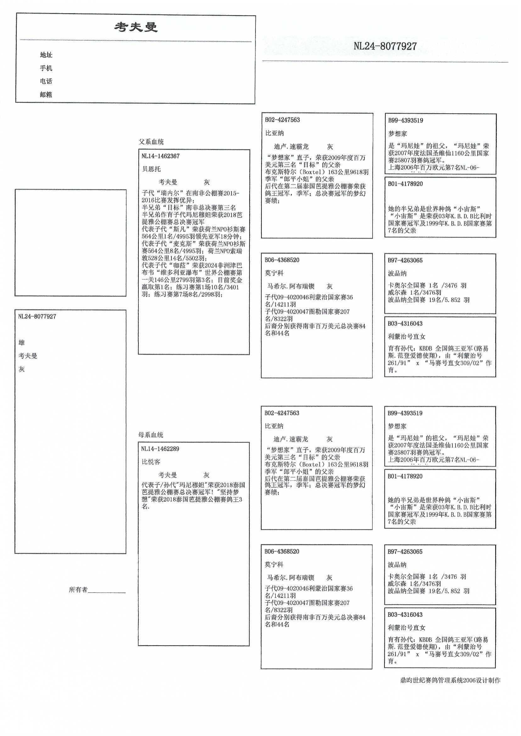 祖辈均为“比亚纳” x “莫宁科”