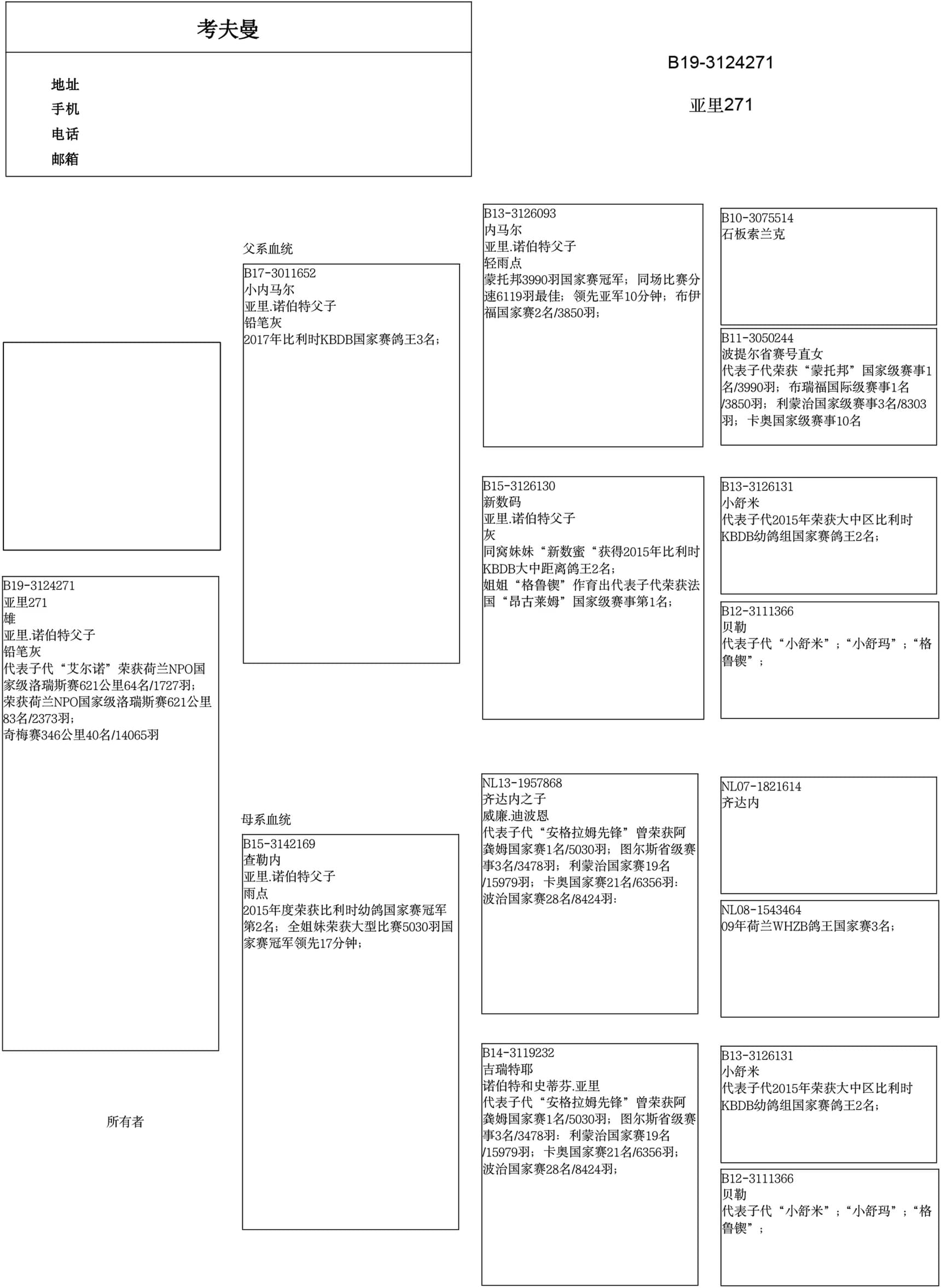 齐达内之子”(NL13-1957868 – 威廉迪波恩原舍) x “小盖雷雌” (子代荣获2名 国家级KBDB大中距离鸽王)