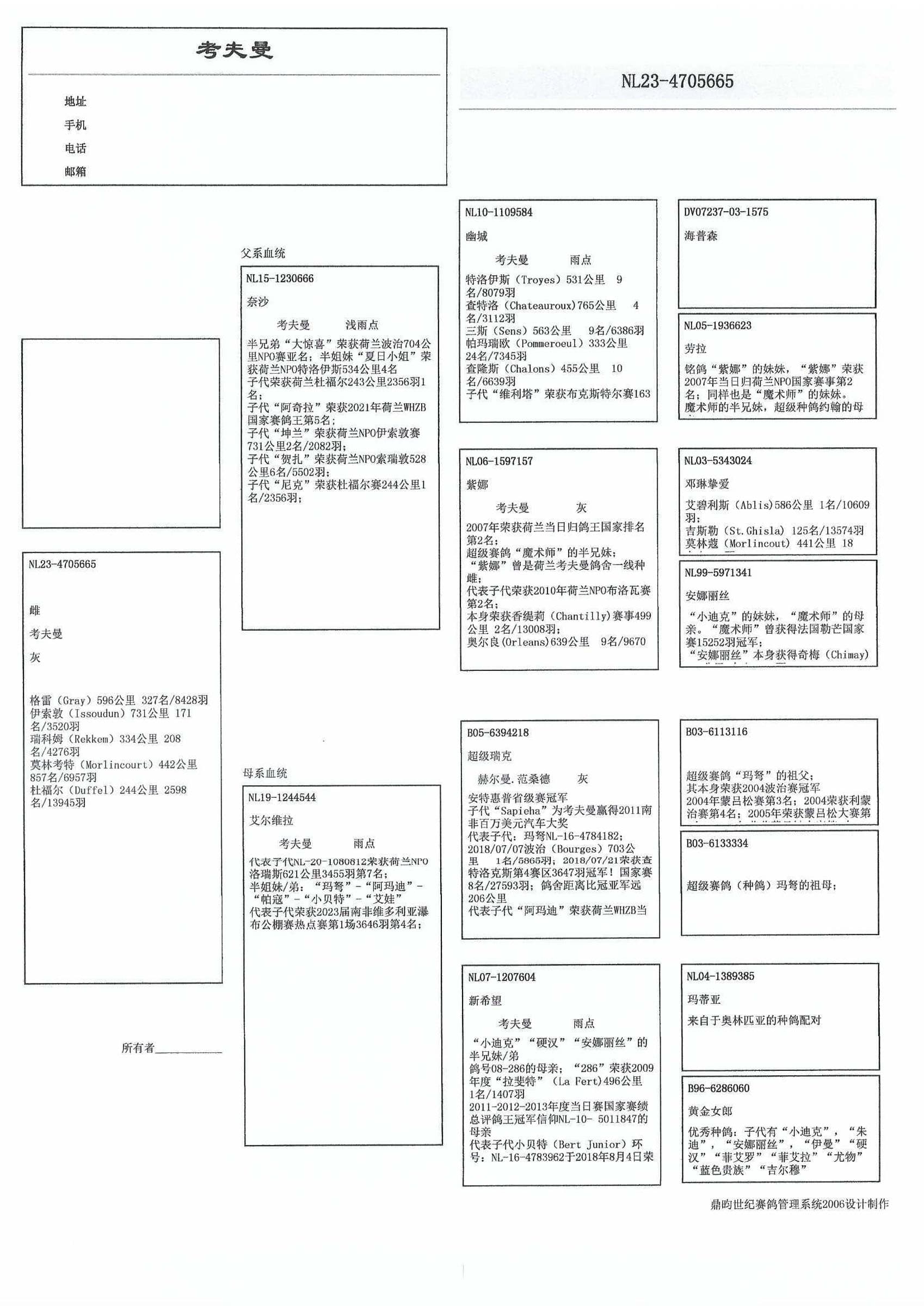 4名 全国鸽王长距离WHZB/TBOTB