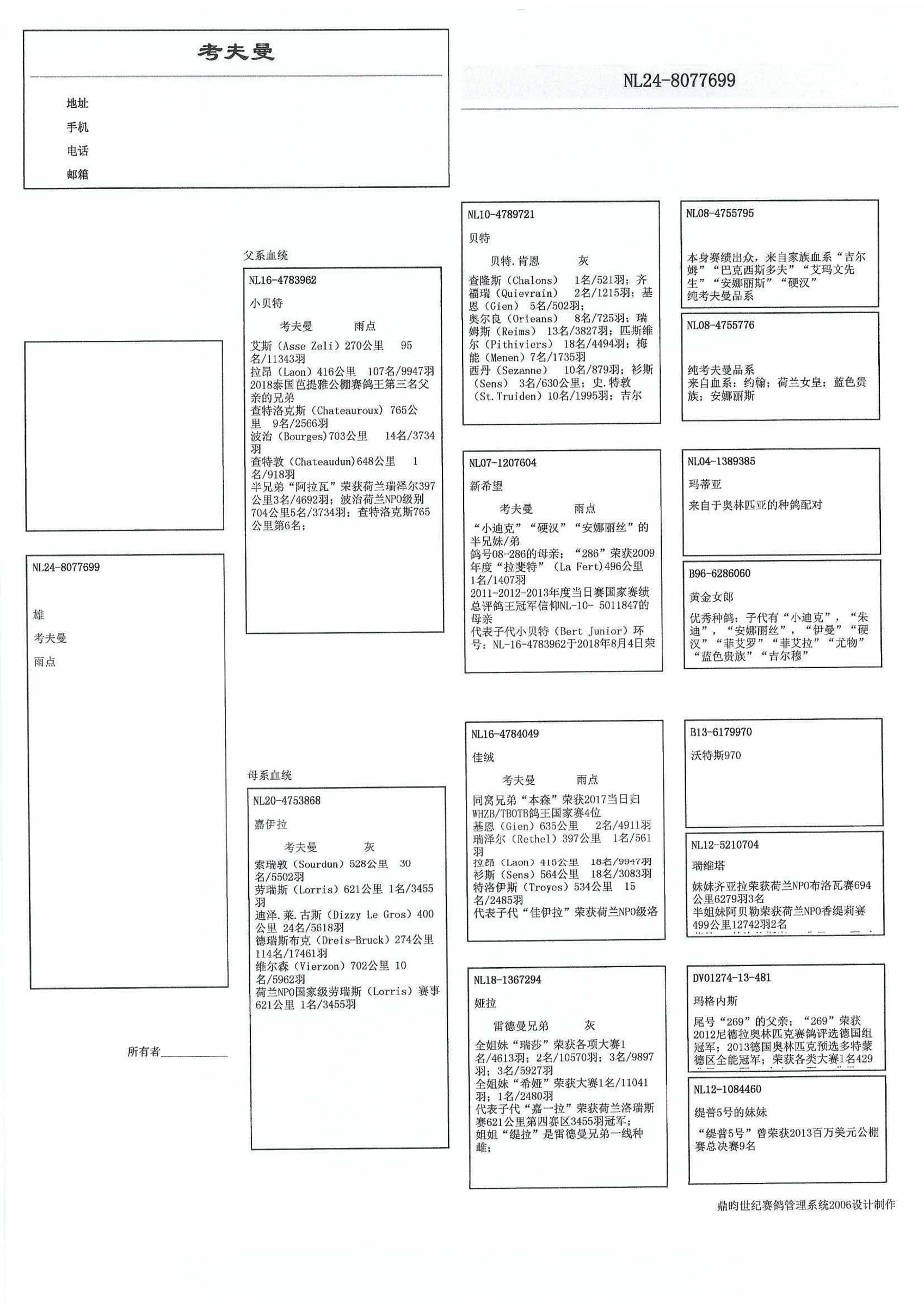 “贝特” (1名 全国 鸽王评选 当日归 “长镜头”’04) x “新希望” (“黄金女郎”之女)