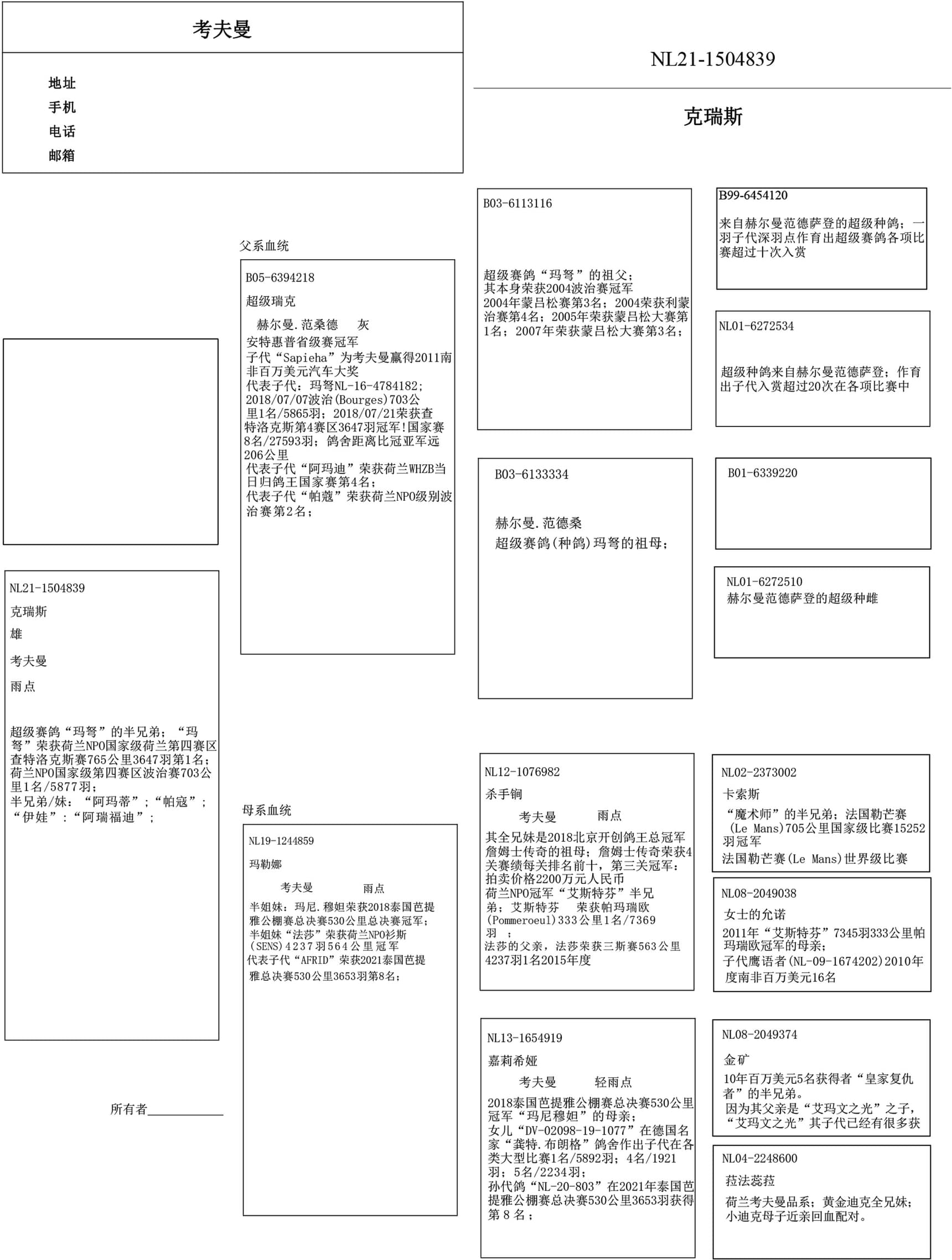 4名 国家级长距离鸽王WHZB/TBOTB