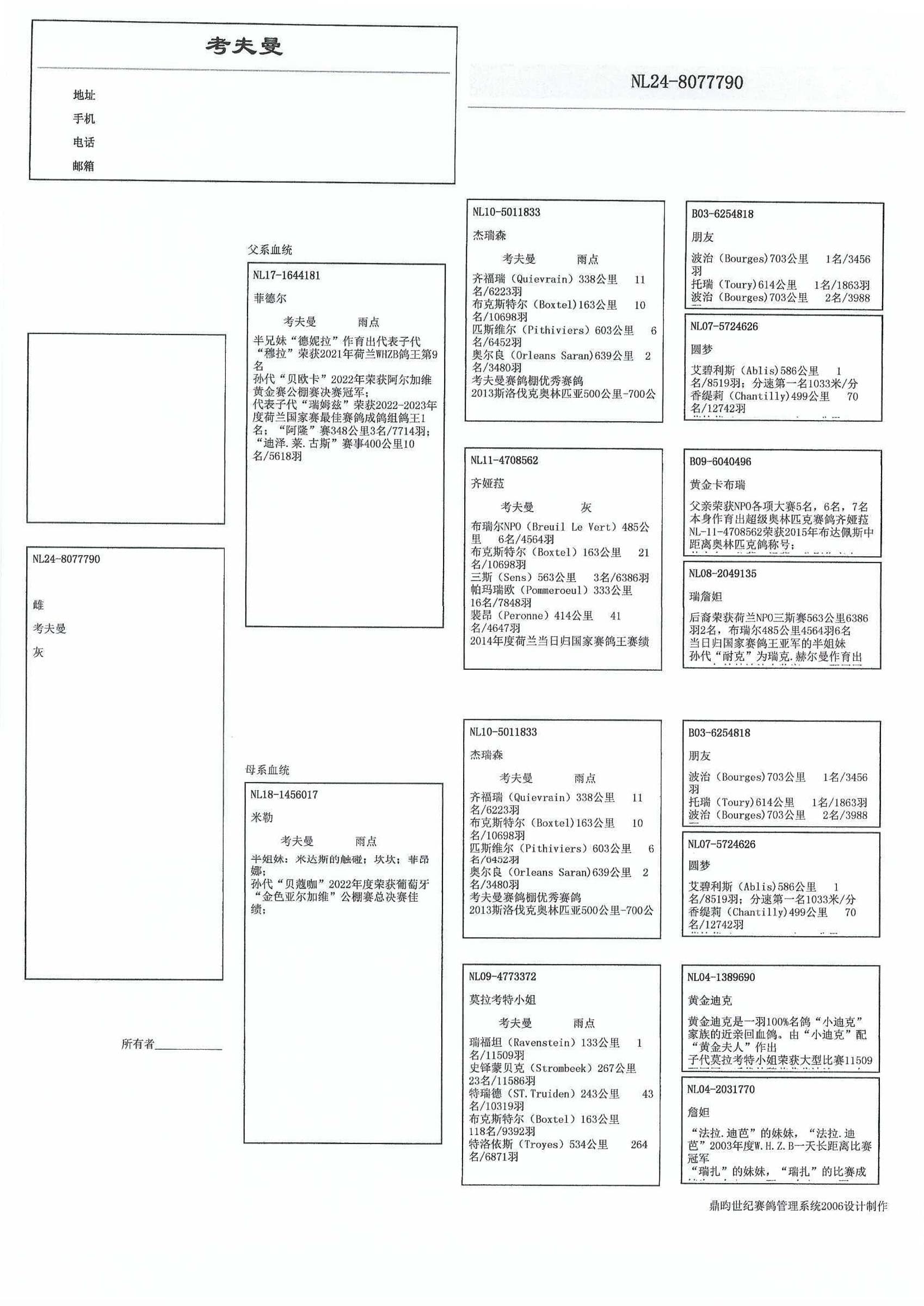 1名 全国 鸽王评选 “各类赛事最佳” 成鸽组 ’22-‘23