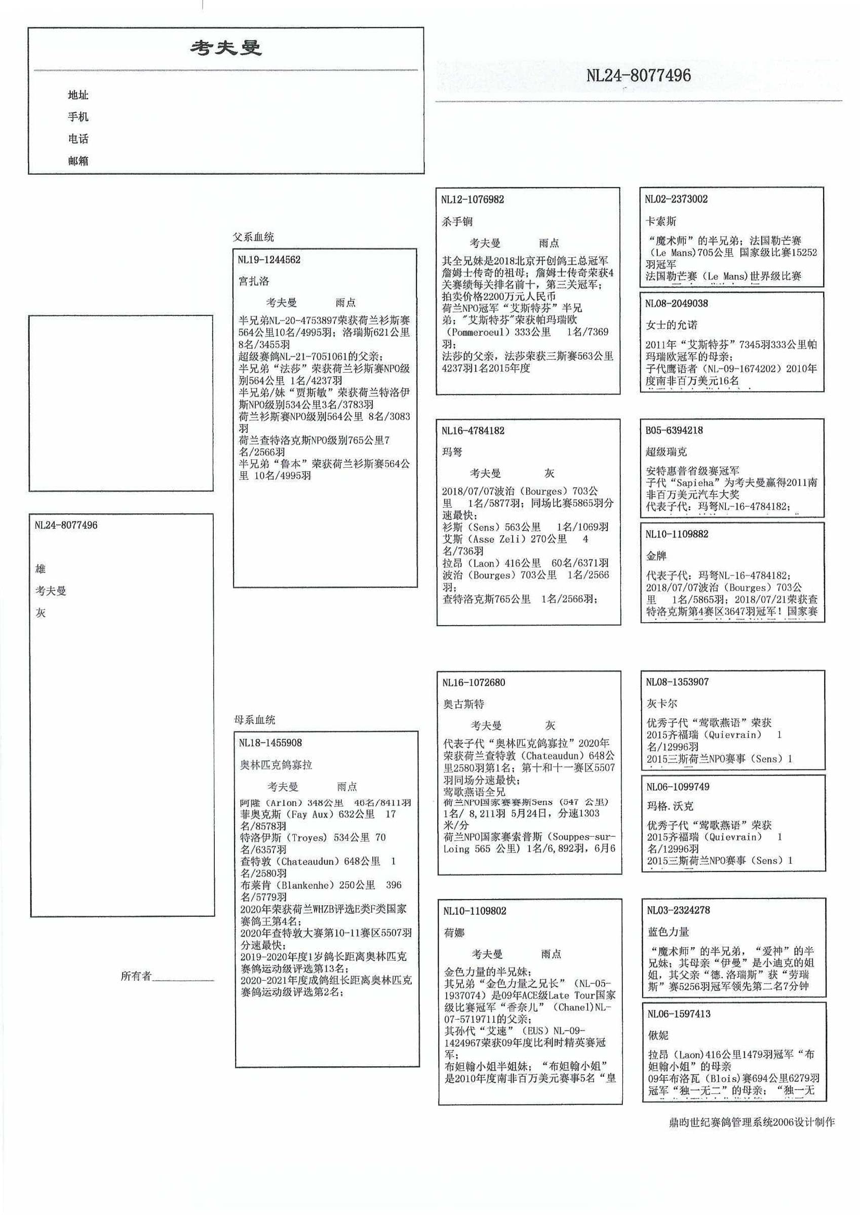 3名 NPO“雌鸽杯”鸽王排位 2021